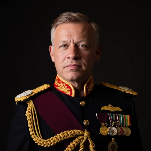 <lora:KING_ROYAL_UNIFORM_FLUX-000003:1> A high resolution photograph of (character) dressed in a fullroyal military uniform. He wears a fullroyal peaked cap.