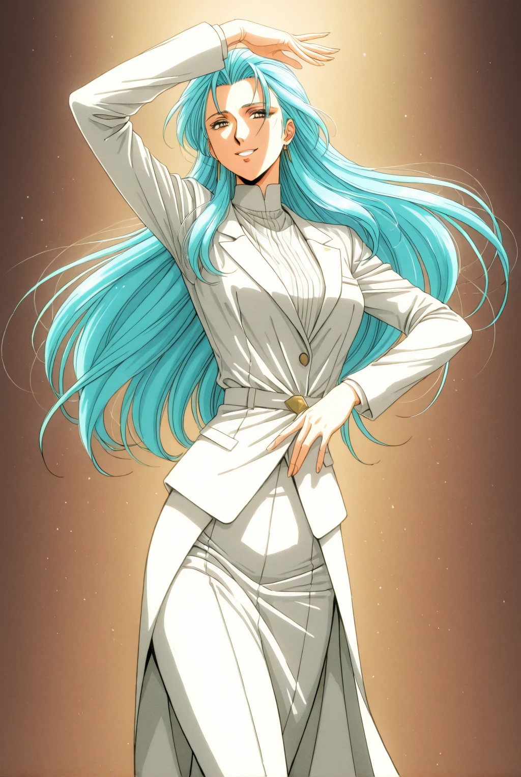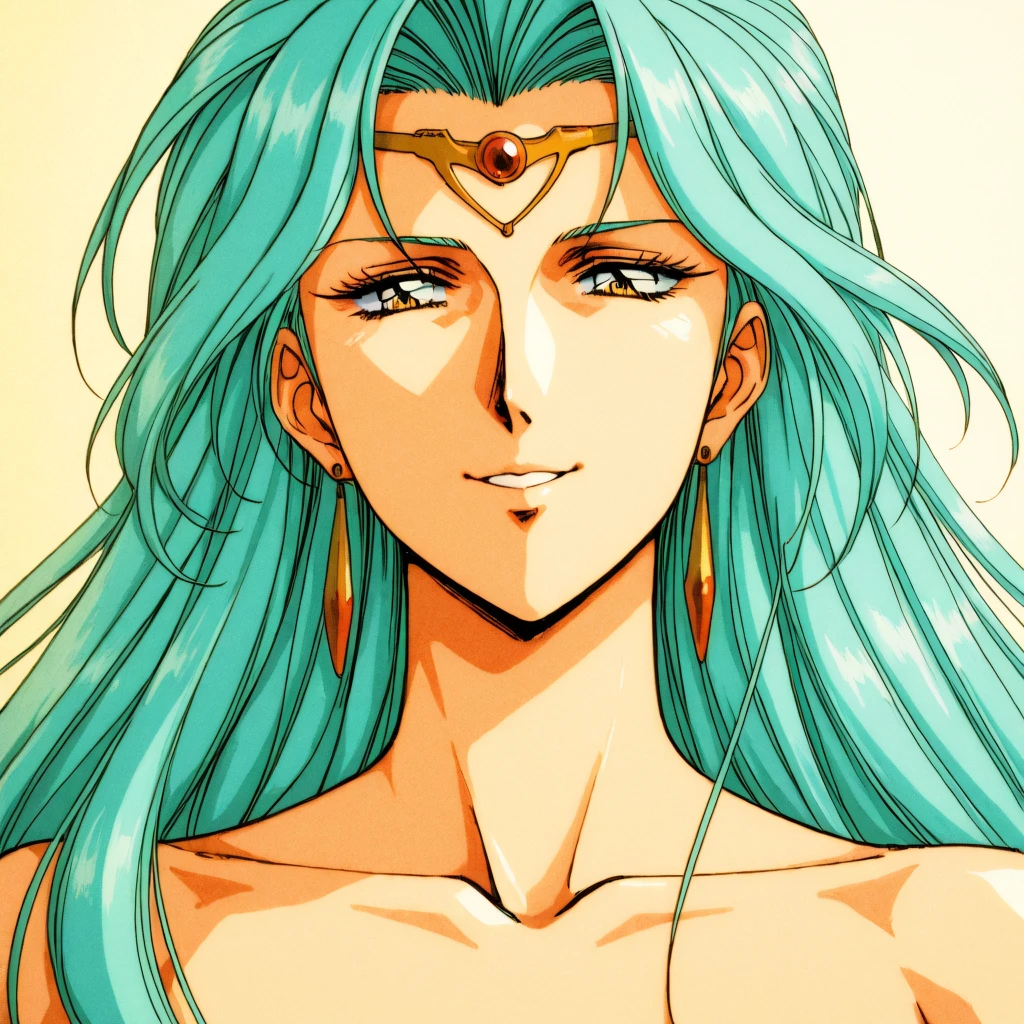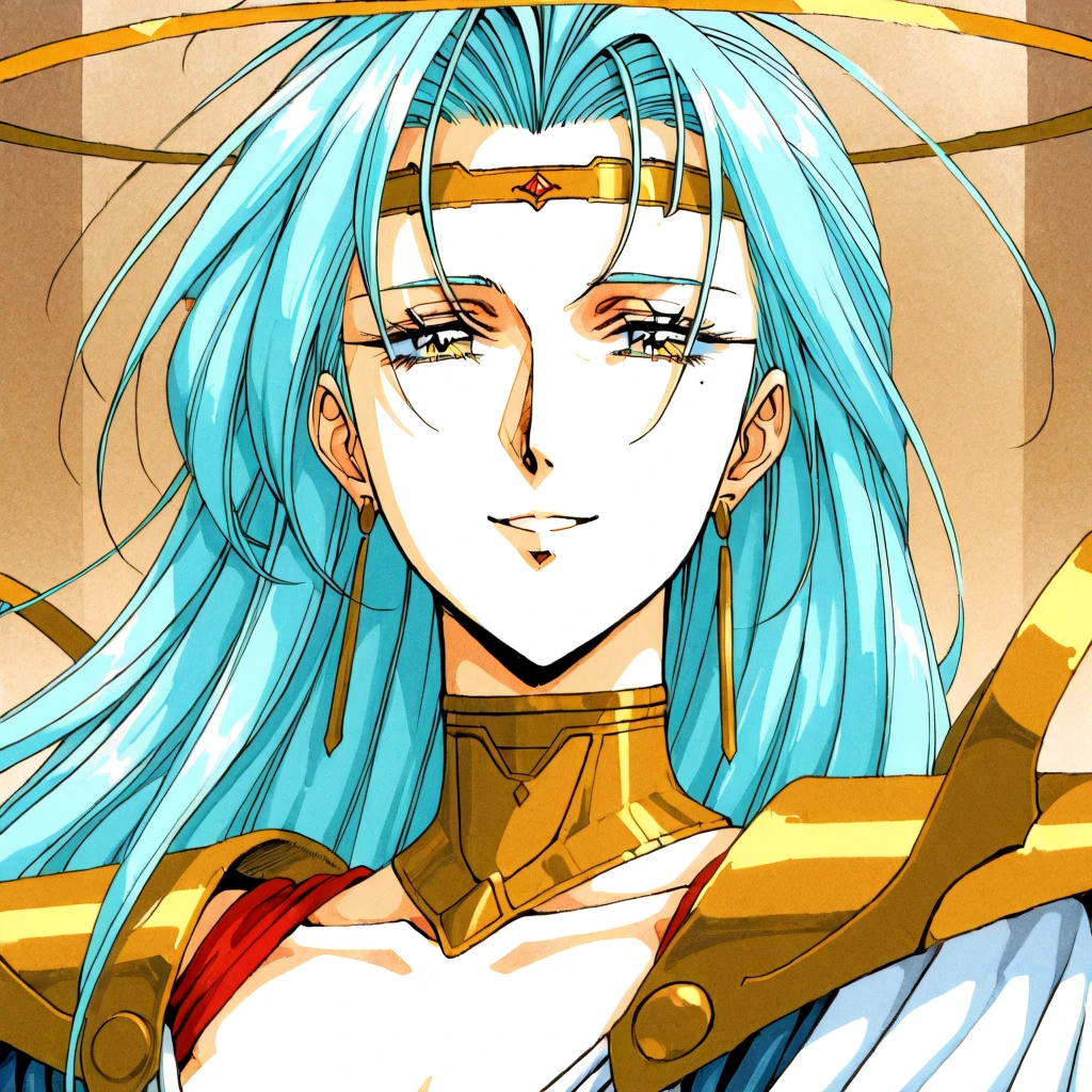 1 girl, Lushiris, mature face, azure hair, long hair, slender body, gold eyes,