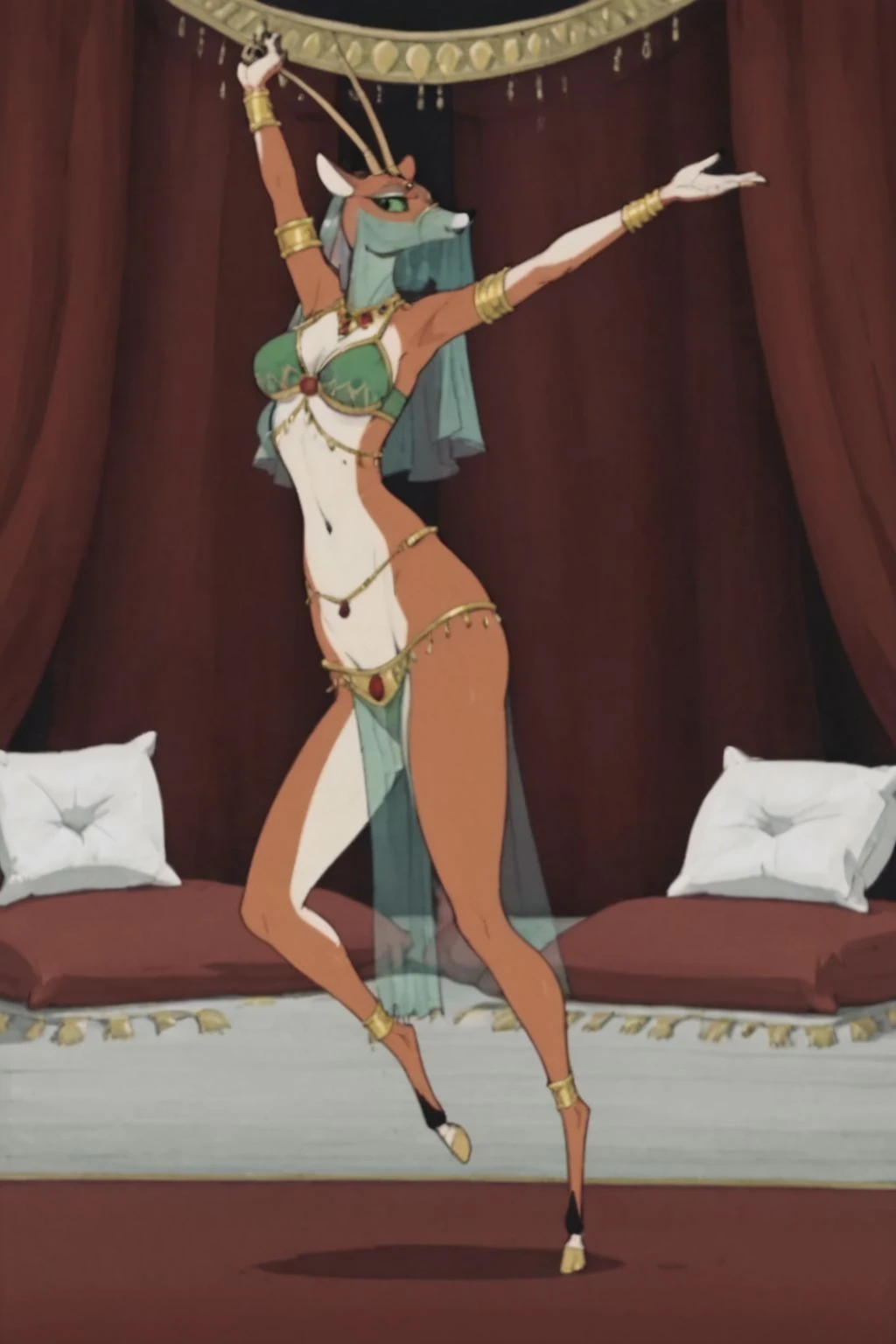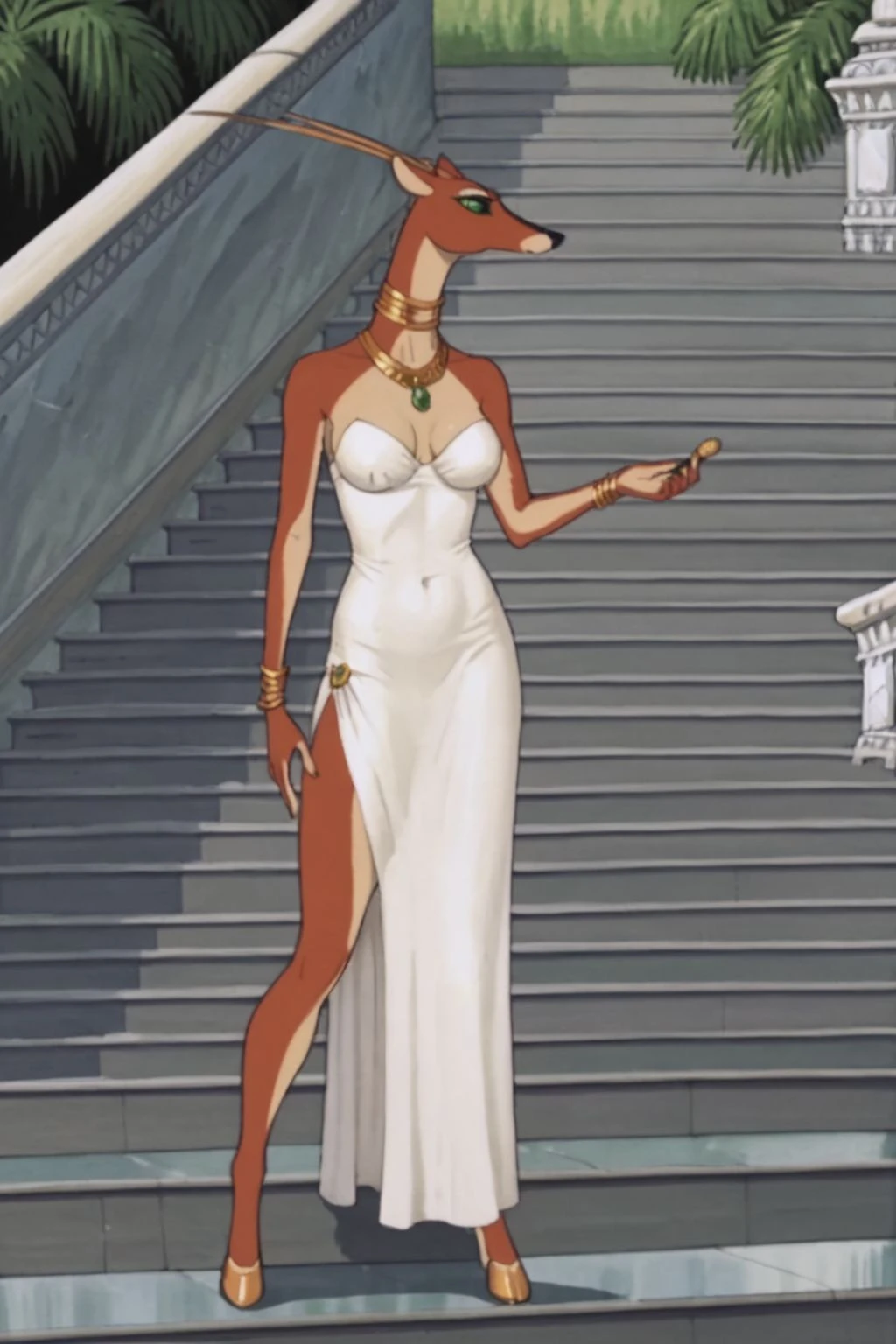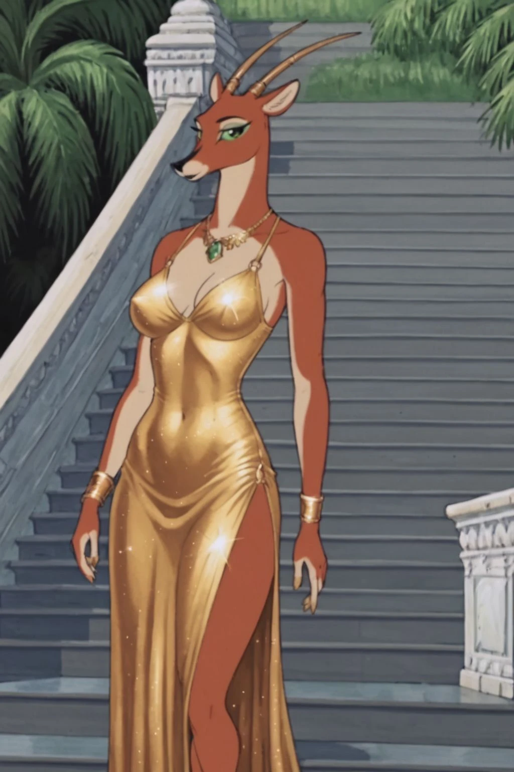 golden antilope, antilope, anthro, green sclera, long horns, black nose,