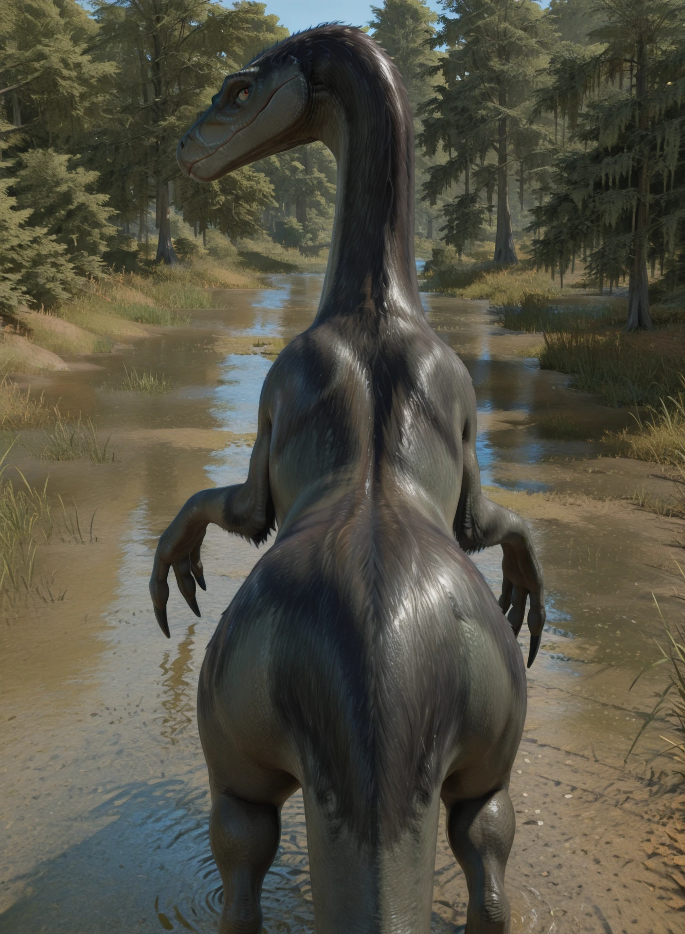 The appearance of Therizinosaurus had been a debate until recent decades because of the highly incomplete nature of early finds and a lack of knowledge of the dinosaurs that would come to be categorized later as therizinosauridae. During the early phases of its discovery, it was assumed to be a species of an aquatic turtle. After several examinations and revisions, it was given the description of a gigantic carnosaur (at the time, a family that included most large carnivorous dinosaurs) measuring 55 ft in length. After the discovery of related species Nothronychus, the debate over its appearance ended. While its diet remains unconfirmed, Therizinosaurus was originally thought to be a carnivore, at the point when it was incorrectly theorized to be a much larger animal with a radically different body plan. However, today, scientists agree that Therizinosaurus was not carnivorous, instead being herbivorous, based on studies of its close relatives like Erlikosaurus, Segnosaurus, Nothronychus, and Falcarius. Based on studies of its relatives, Therizinosaurus is believed to have had weak jaws and probably would have fed by sitting down and using its long arms and claws to pull vegetation into its mouth, but these claws are also believed to also be used to defend itself as well. Footprints suggested to have come from unknown therizinosaurids suggest it may have had a plantigrade walking stance, similar to bears and crocodiles. It remains unknown whether paleontologists will find a complete fossil and skull of Therizinosaurus in the near future.