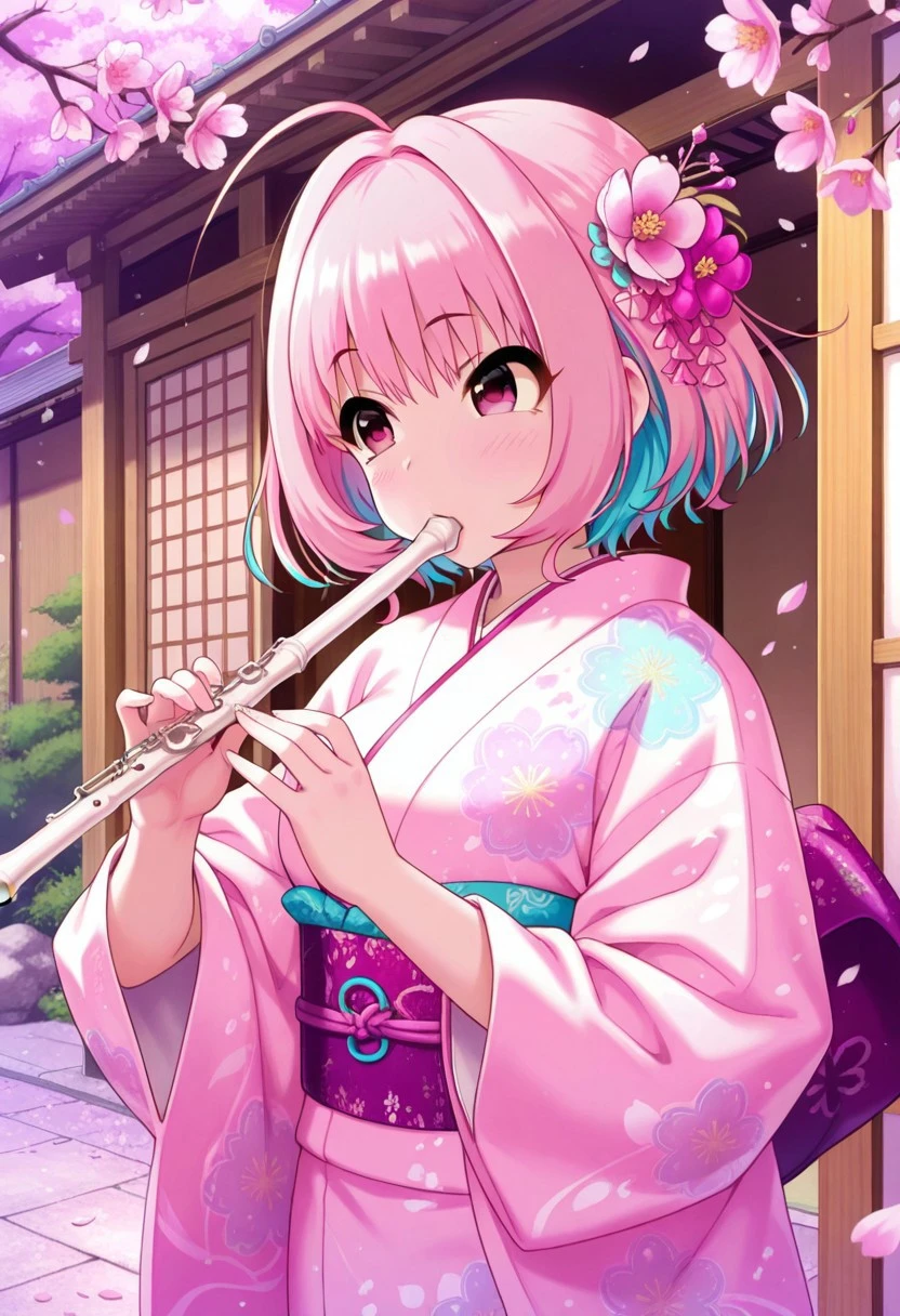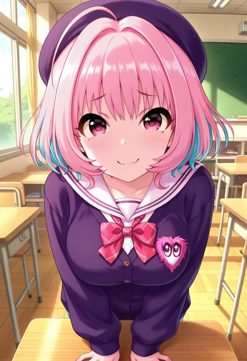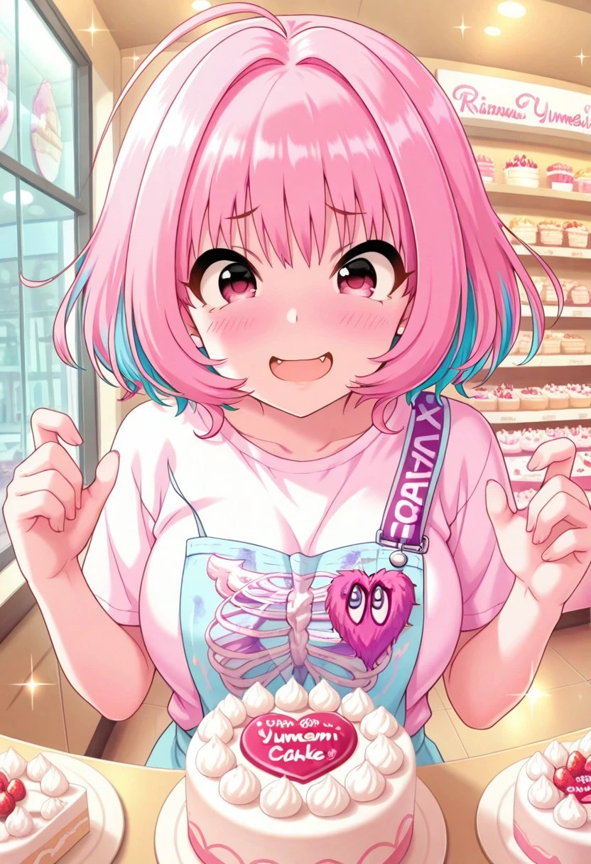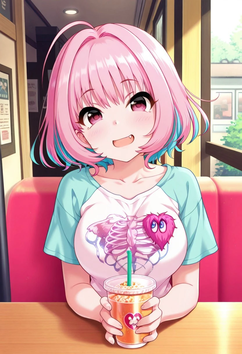 Trigger Words: yumemi riamu, pink hair, ahoge, short hair, pink eyes