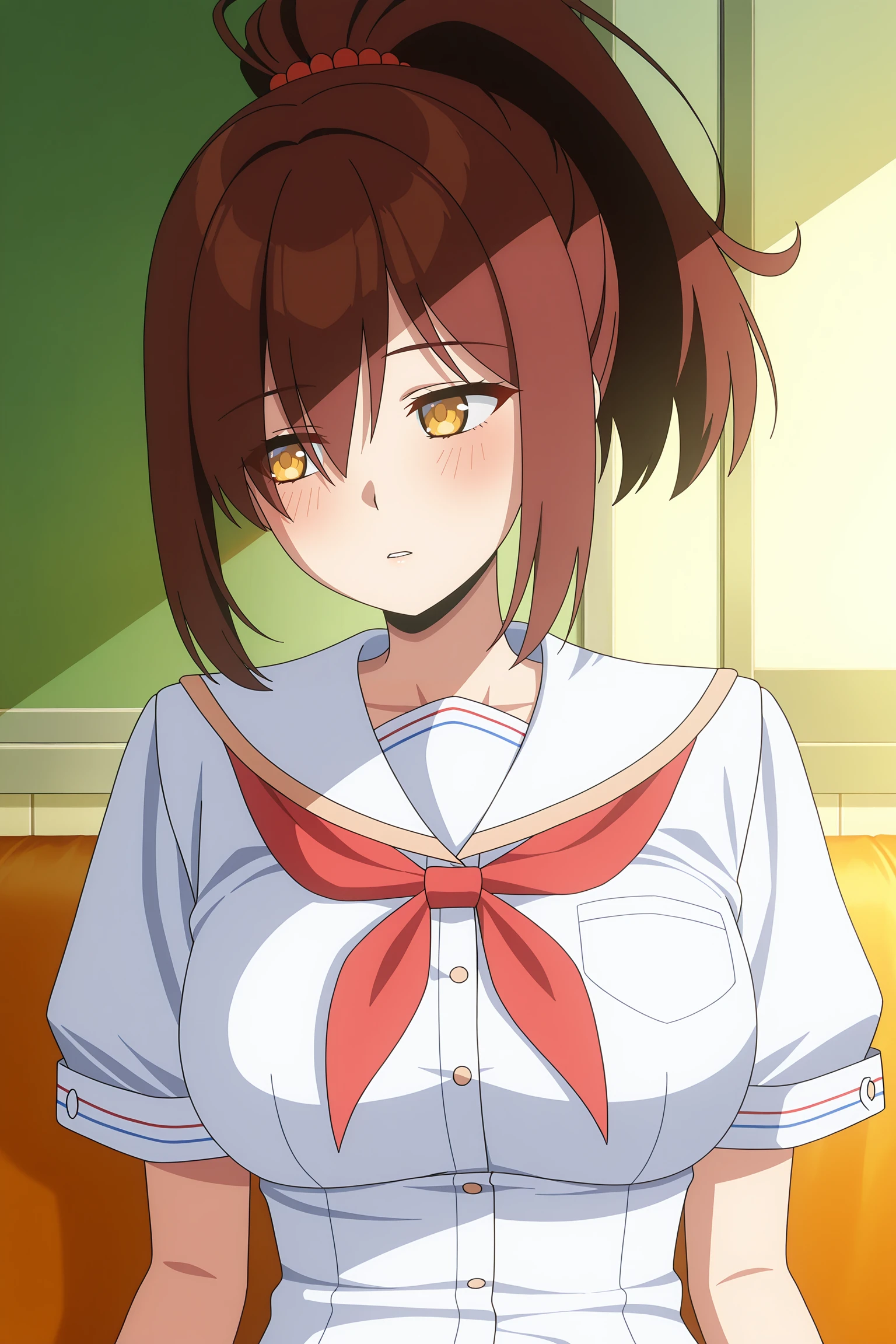 ponytail,brown hair,yellow eyes,Clothes(服装):