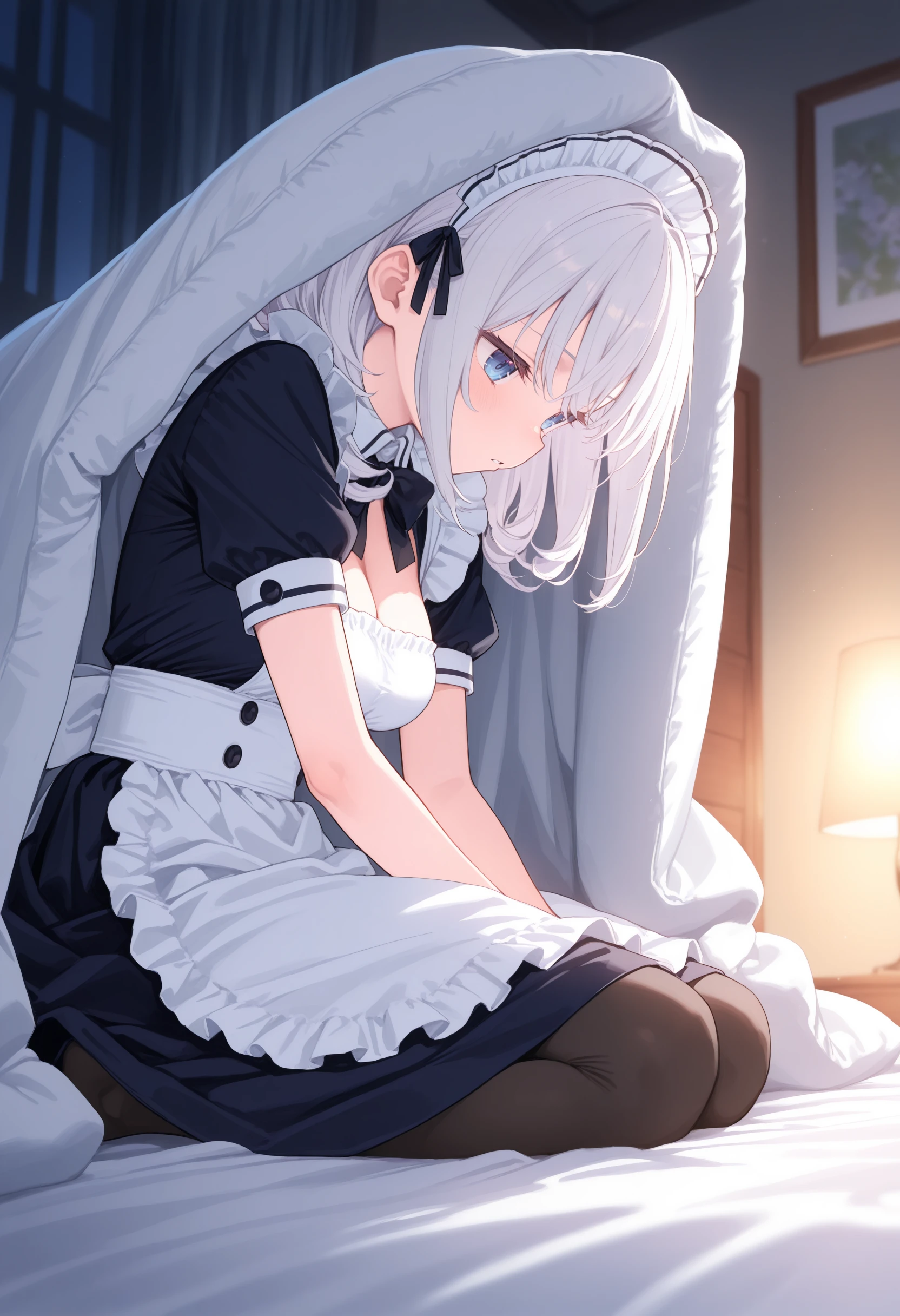 元からある程度学習している概念なのでモデルによってはLoRA無しでも出ますが打率はそんなに高くないので補助します。トリガーだけでも良いですが blanket, bed sheet,on bed, night 辺りやうつ伏せ等の体勢指示をしても良いかもしれません。