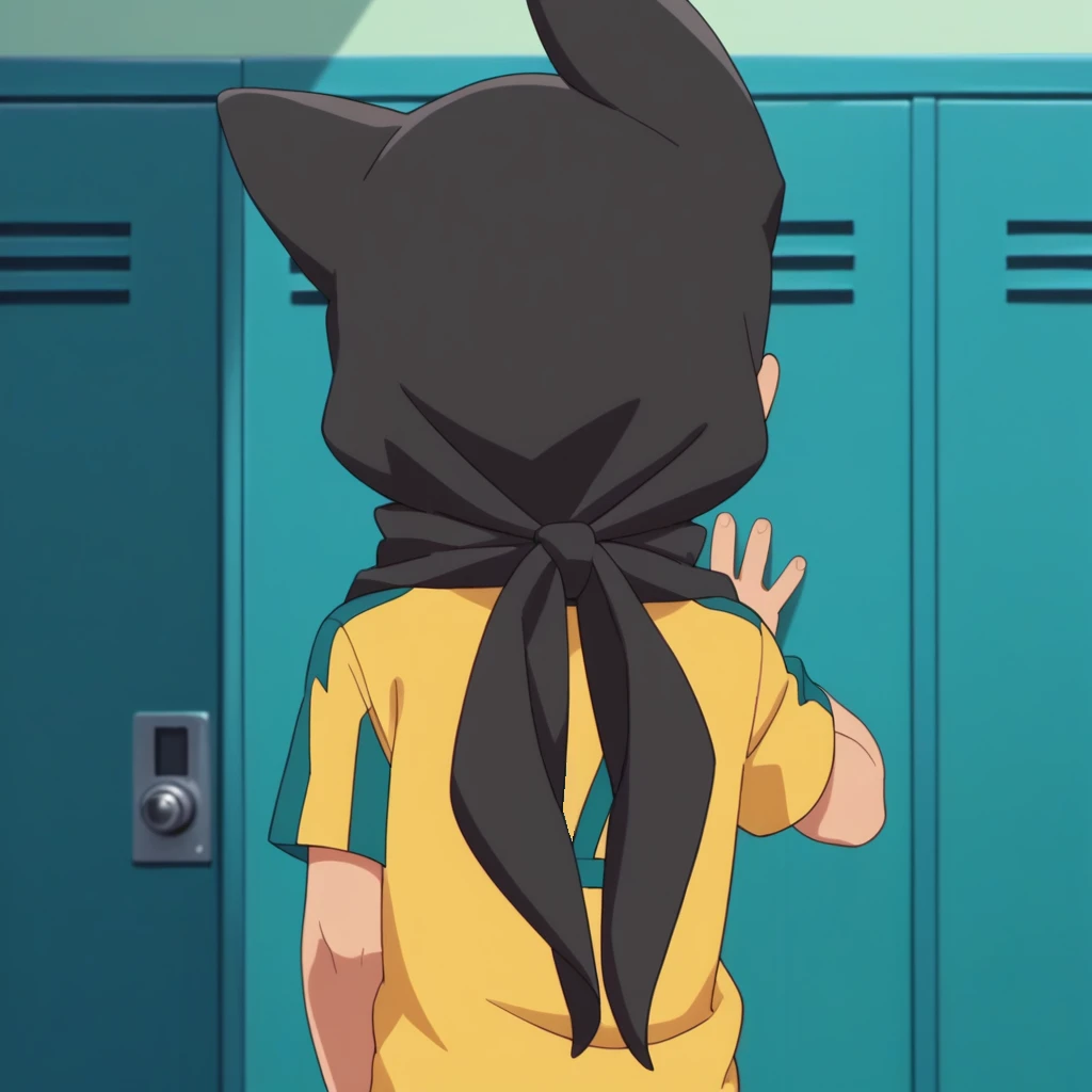 Prompts: male, male child, child, short character, grey hair, black eyes, headscarf, soccer uniform, single wristband, teal shorts, socks, kneehighs, cleats