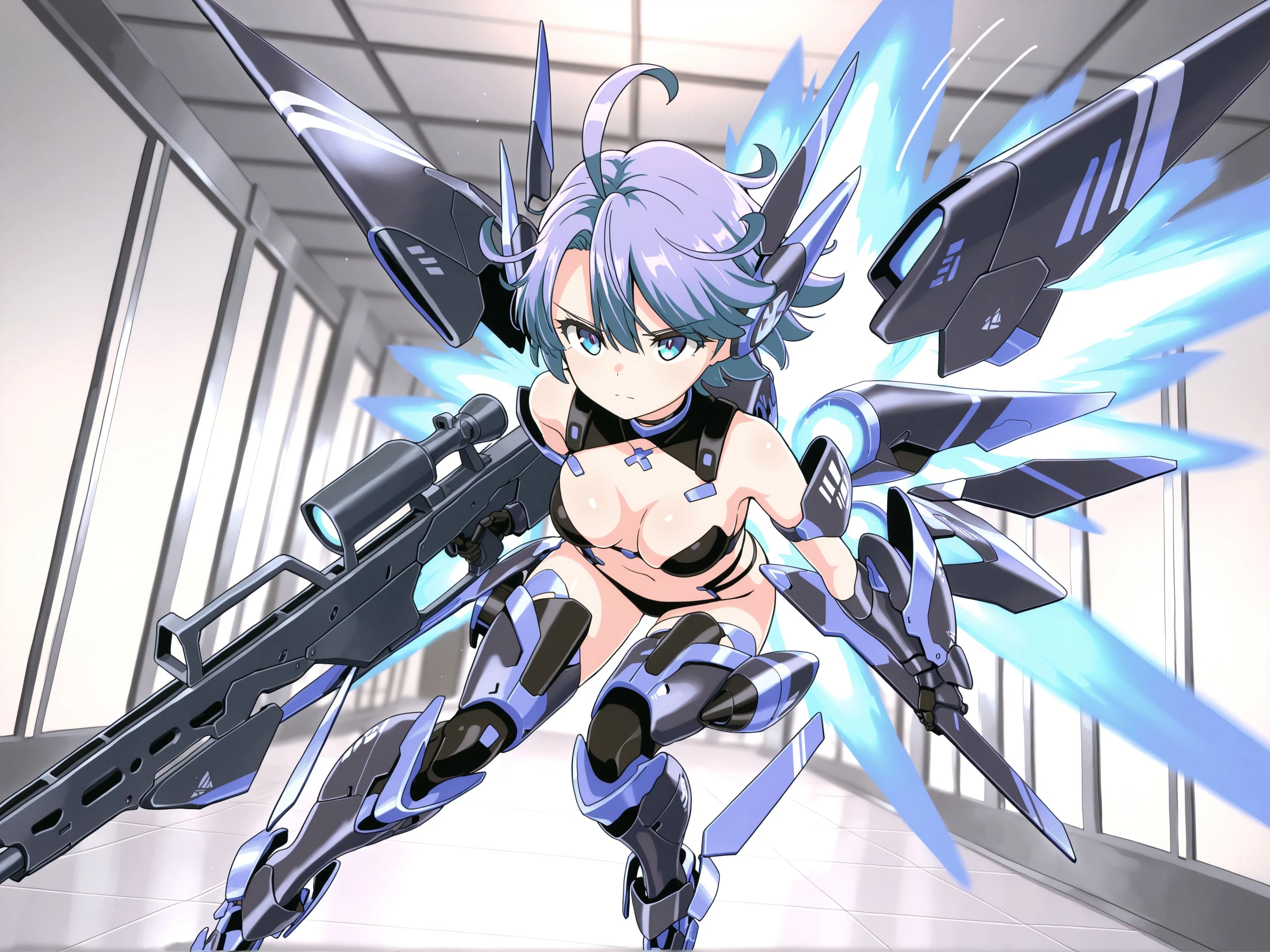 MagnaSpica: magnasp, mecha musume, headgear, choker, revealing clothes, black bikini, gauntlets, machinery, armored boots