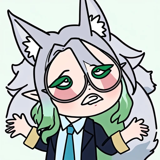 nnn, tilt head, waving hand, front teeth, close eyes, curved mouth, chibi,