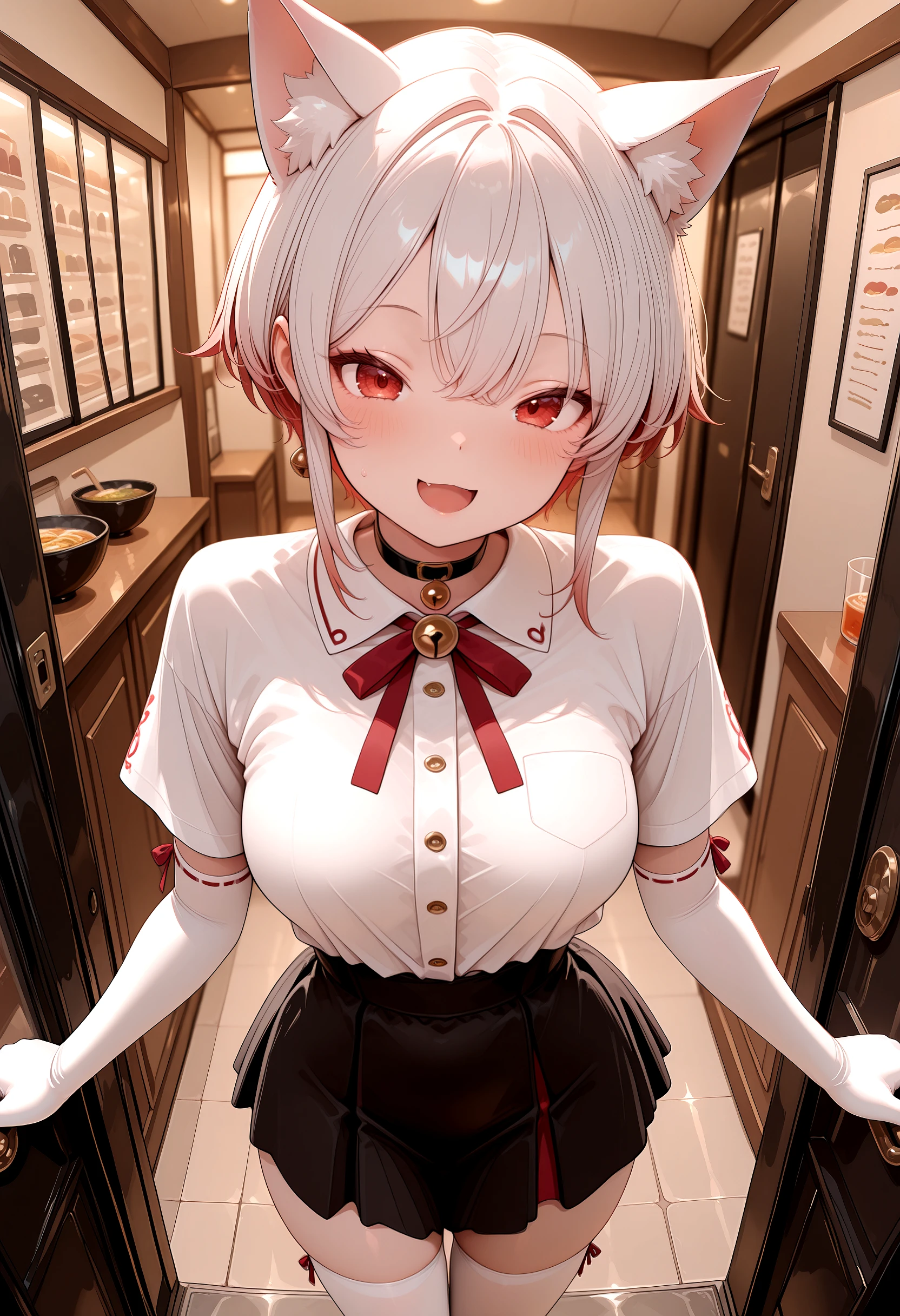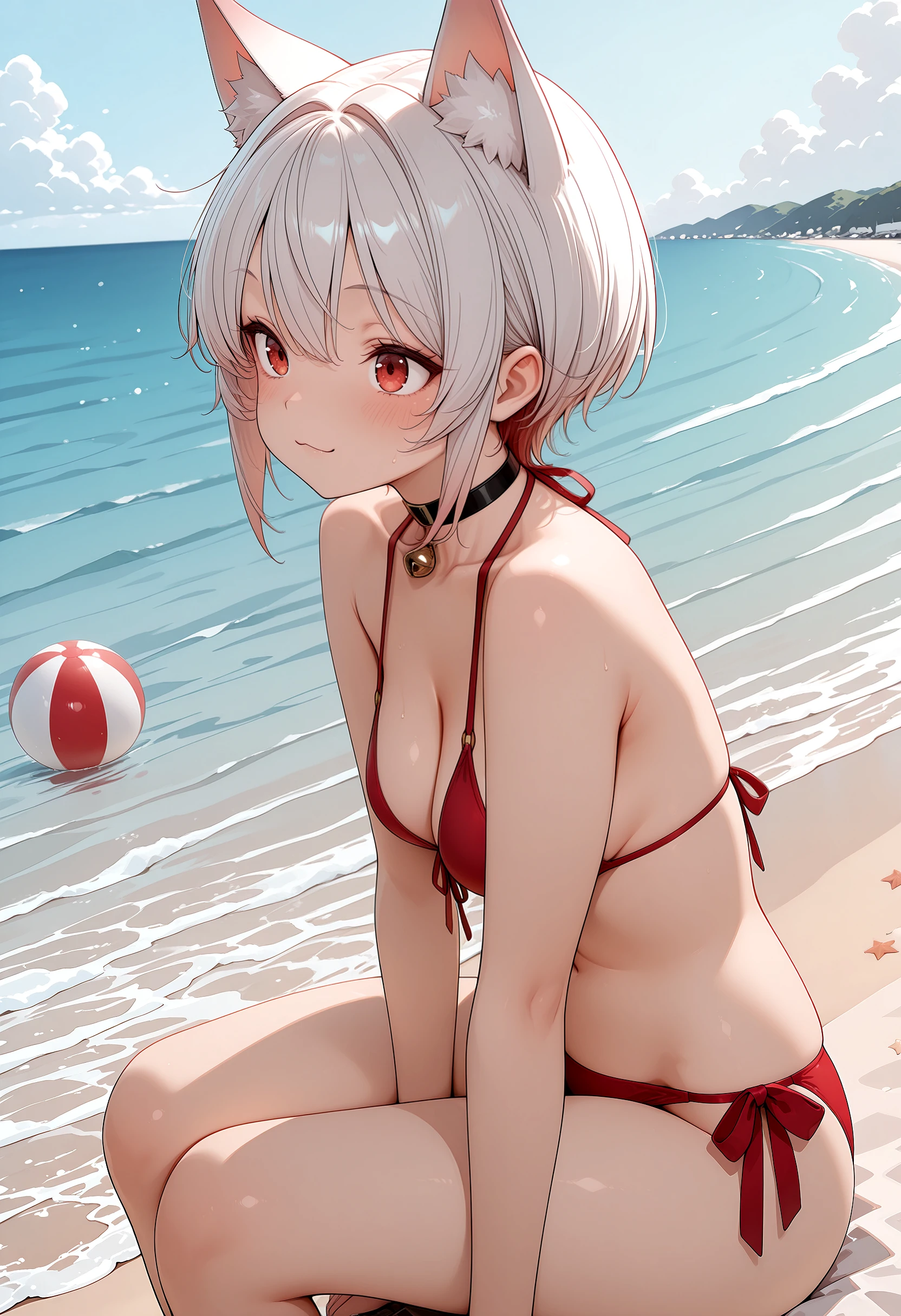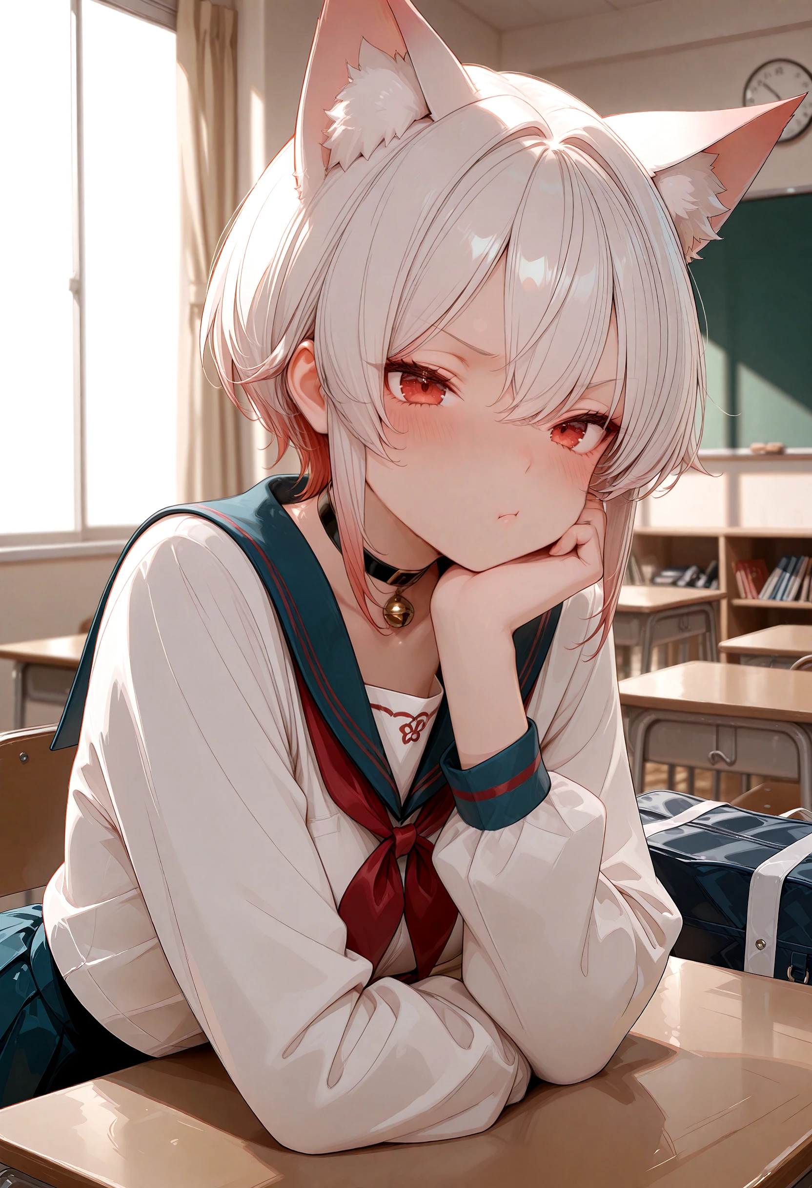 Meet Yuzuki Shirakawa (็ฝๅท ๅคๆ) โ a sharp-eyed shrine maiden with crimson eyes that gleam like warm embers, and a white wolfcut streaked with red, just like the first bloom of camellias in snow. Sheโs quiet by nature, graceful in motion, but donโt let that soft voice fool you - the bell at her neck isnโt just for charm.