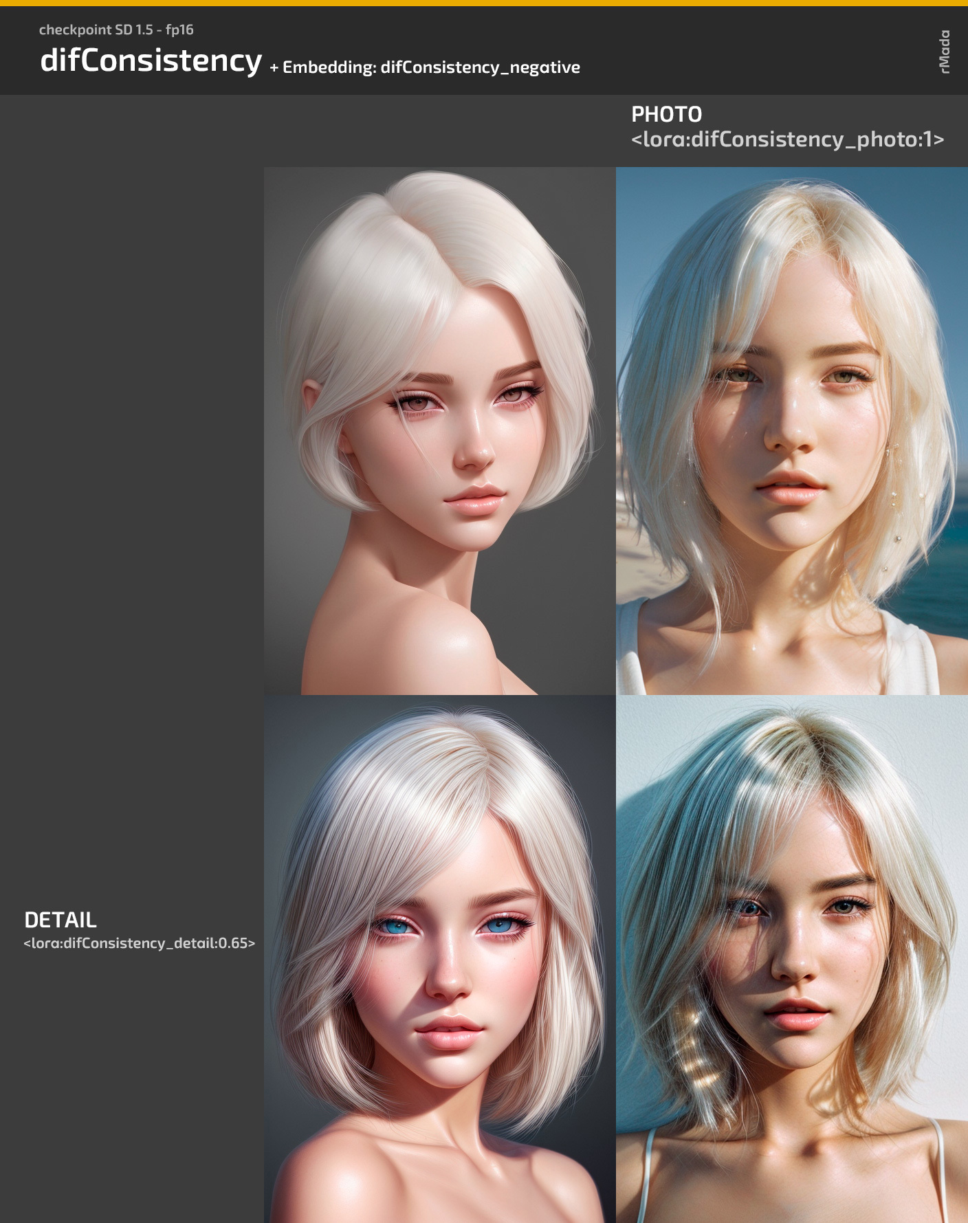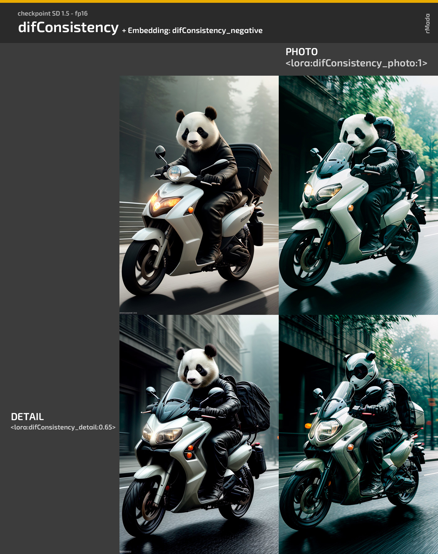 Nice Start: <lora:difConsistency_photo:0.5>, <lora:difConsistency_detail:0.35>, <lora:difConsistency_darktheme:0.35> Neg: difConsistency_negative_v2