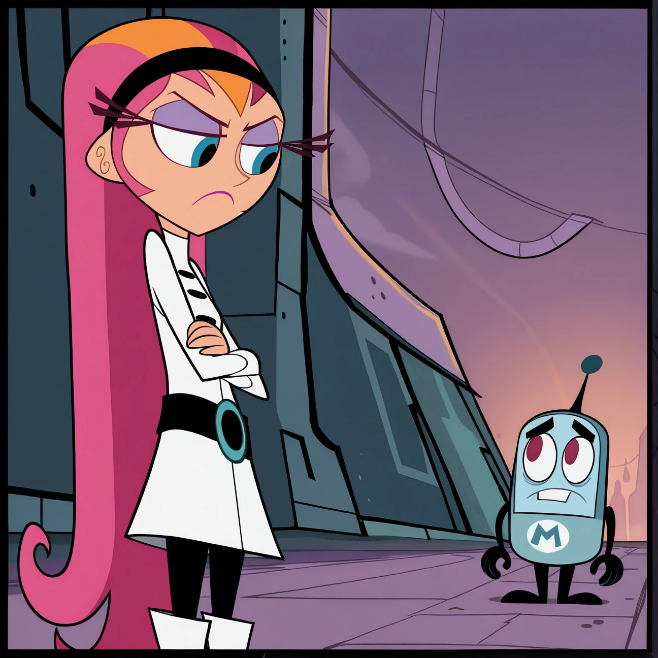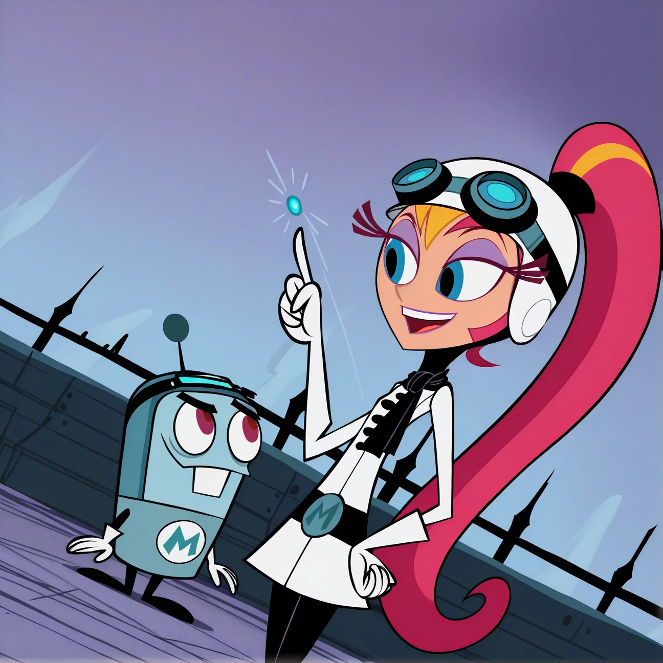 Mole (Robot): r0b0t, no humans, creature, robot, red eyes, antennae, buck teeth, thick eyebrows