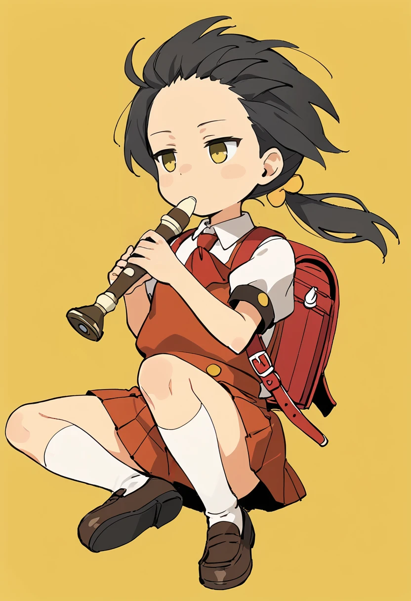 kaaiyuki-default, kaai yuki,yellow eyes, black hair,short low twintails, pinafore dress,pleated skirt,white socks,loafers