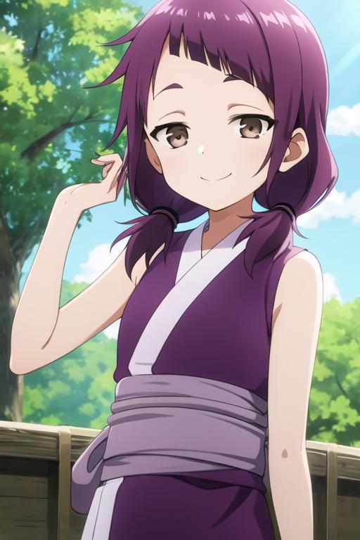 kunoichi_shakuyaku, brown eyes, purple hair, low twintails, purple kimonoFollow me on Twitter(X): @TakagiChikita