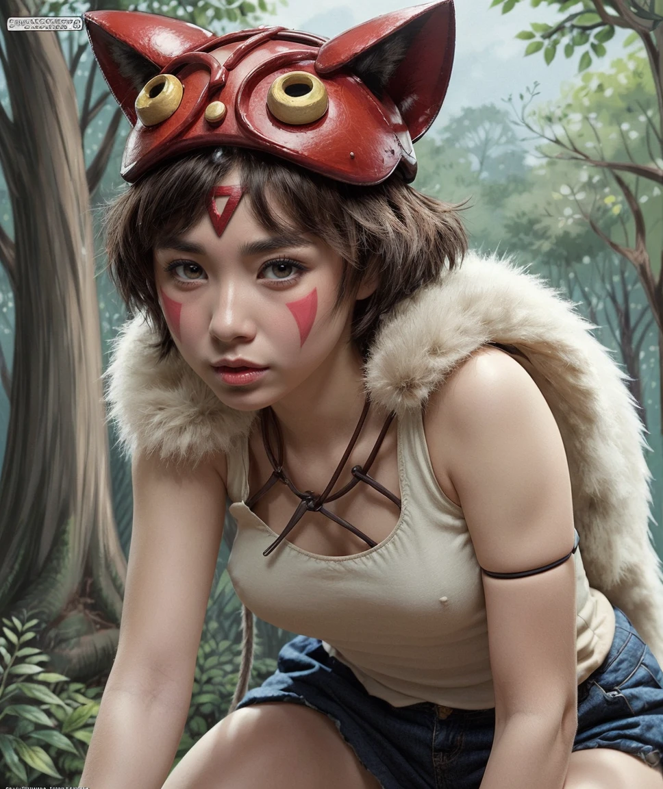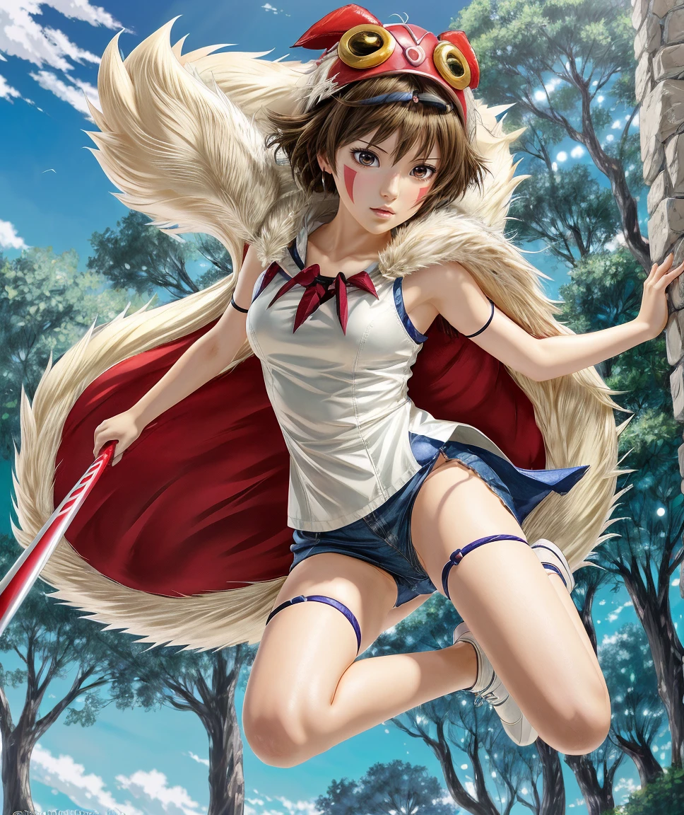 anime artwork <lora:quiron_SanMononokeHime_v1_Lora:0.87> sanmononokehquiron, sanmononokehime, 1girl, Jumping with one knee bent, . anime style, key visual, vibrant, studio anime, highly detailed