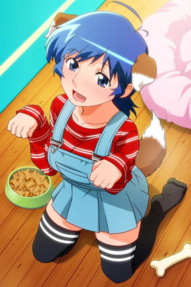 serizawa kasumi, tanaka ryou, blue hair, medium hair, antenna hair, blue eyes, medium breasts