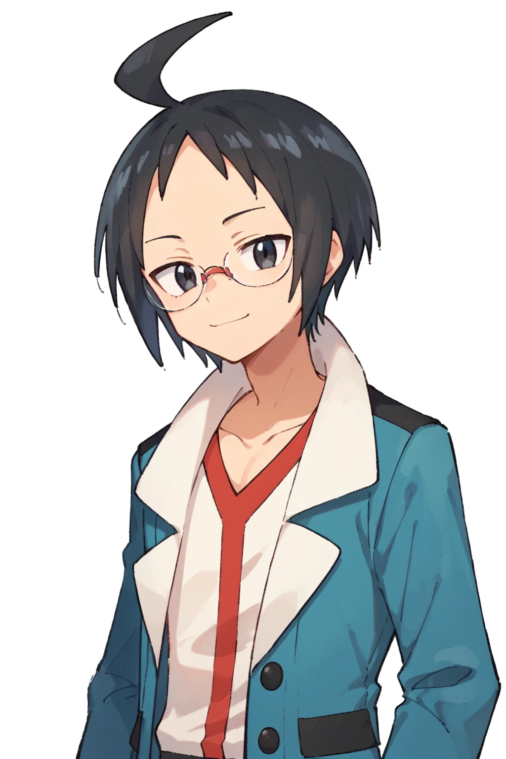 Ch3r3n, black hair, short hair, ahoge, black eyes, glasses
