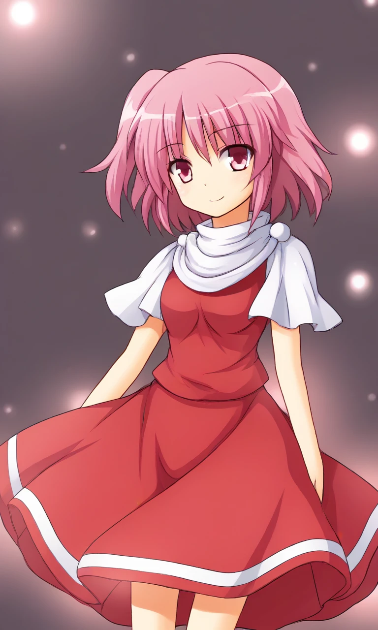 sara (touhou), short hair, one side up, pink hair, pink eyes, red dress, sleeveless dress