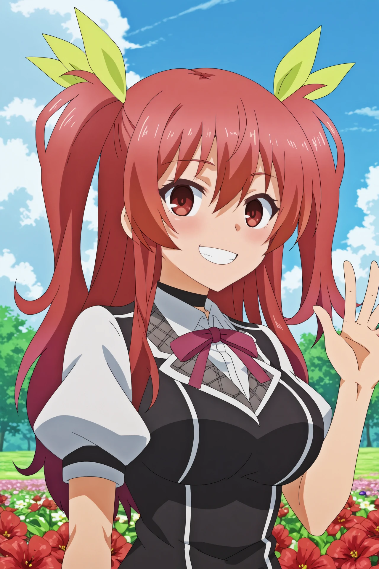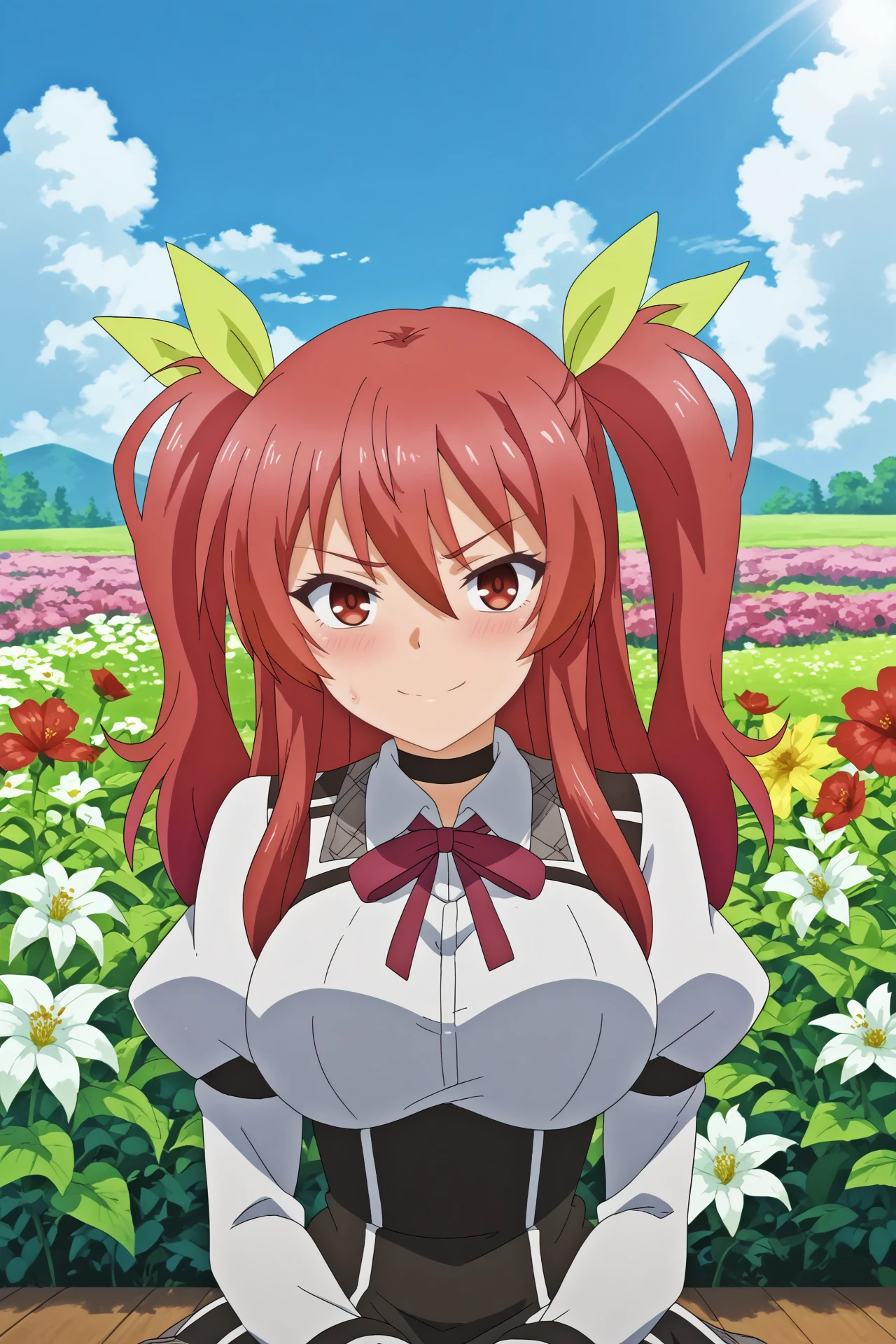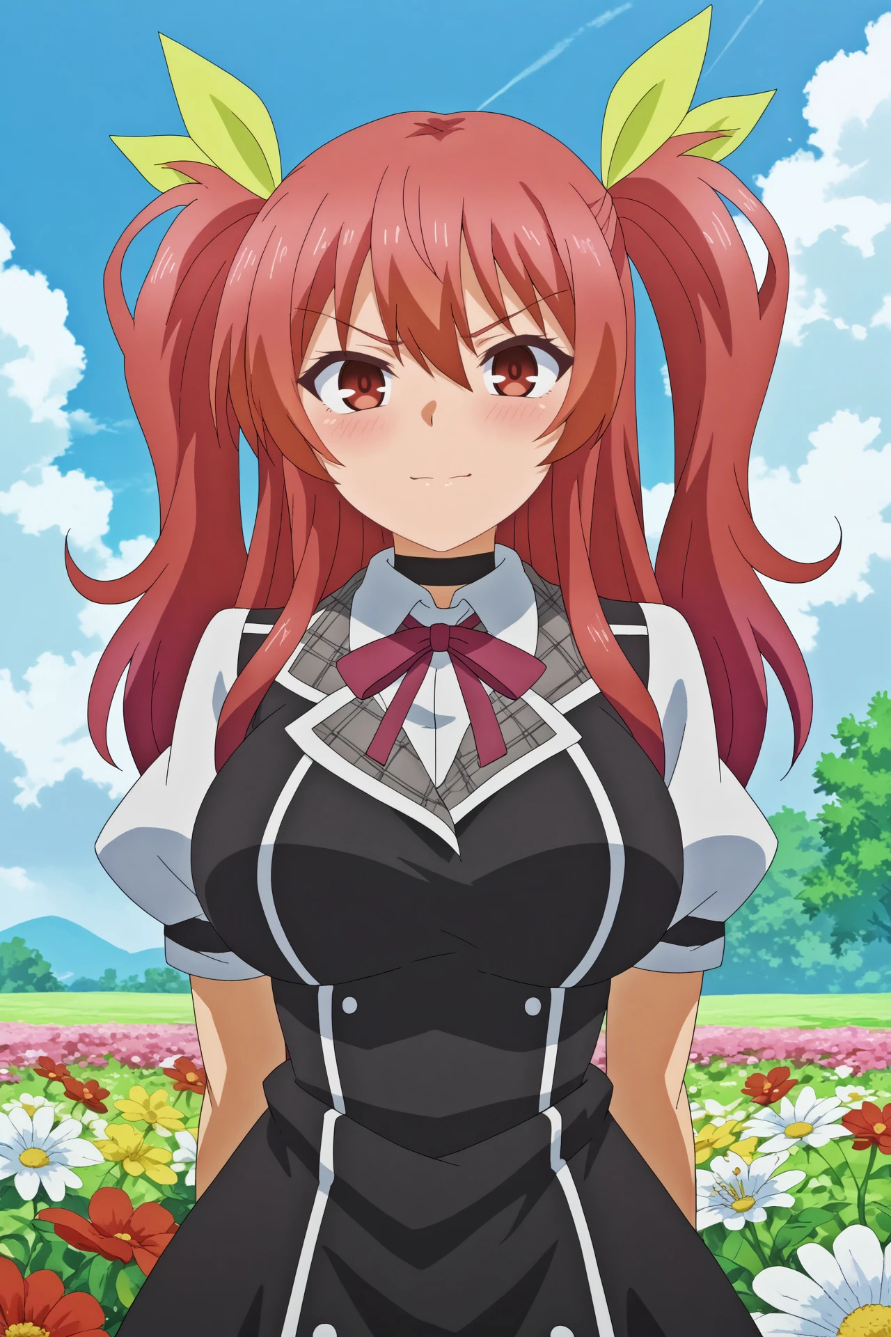 Triggers : stella vermillion,1girl,solo,long hair,two side up,choker,ribbon,hair ribbon,school uniform,breasts,large breasts