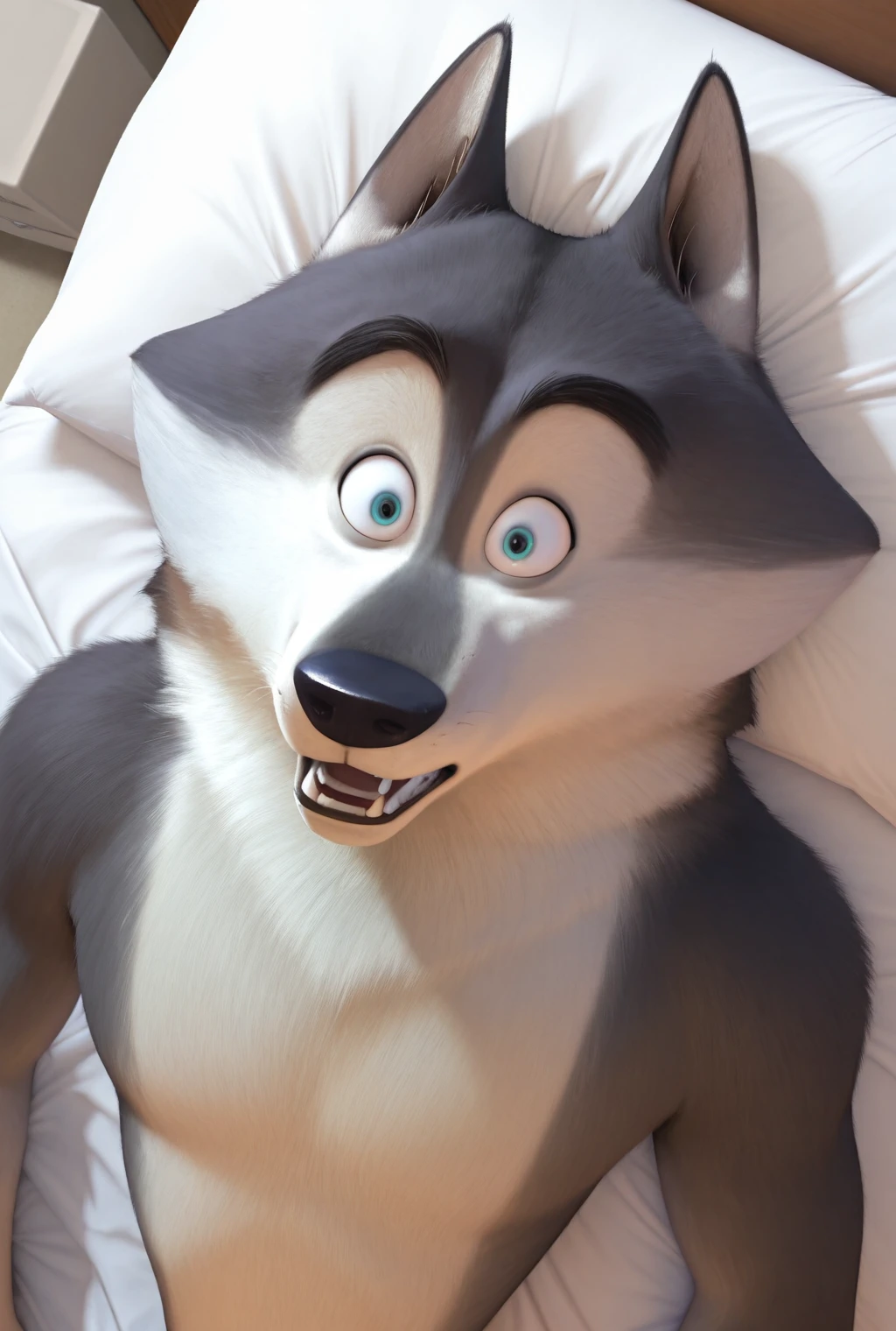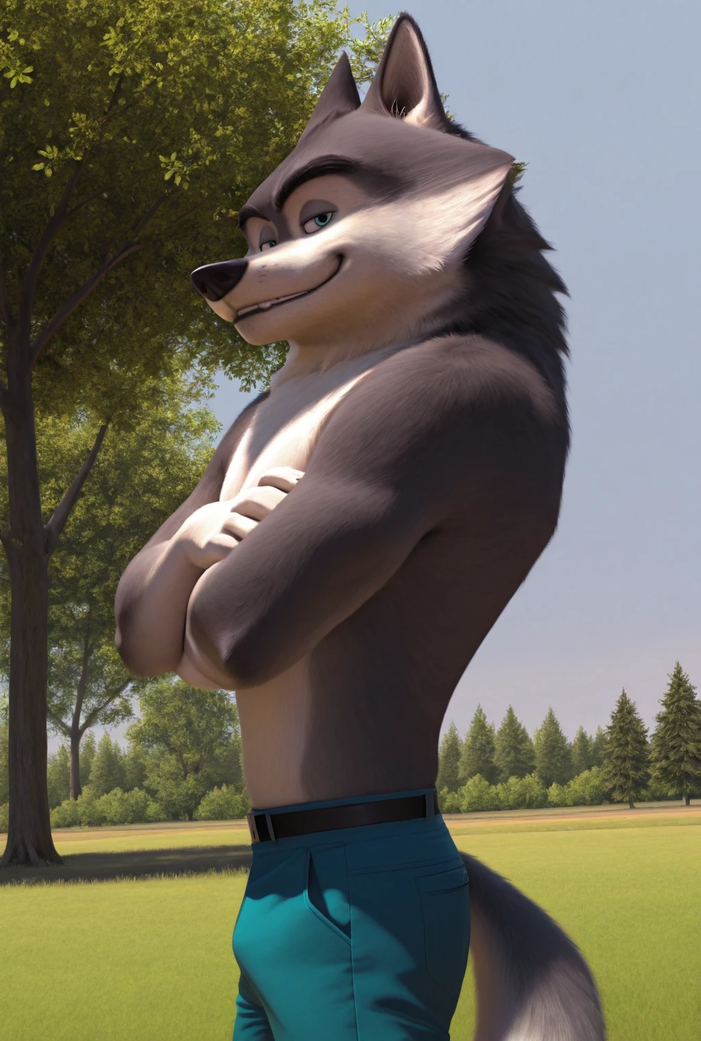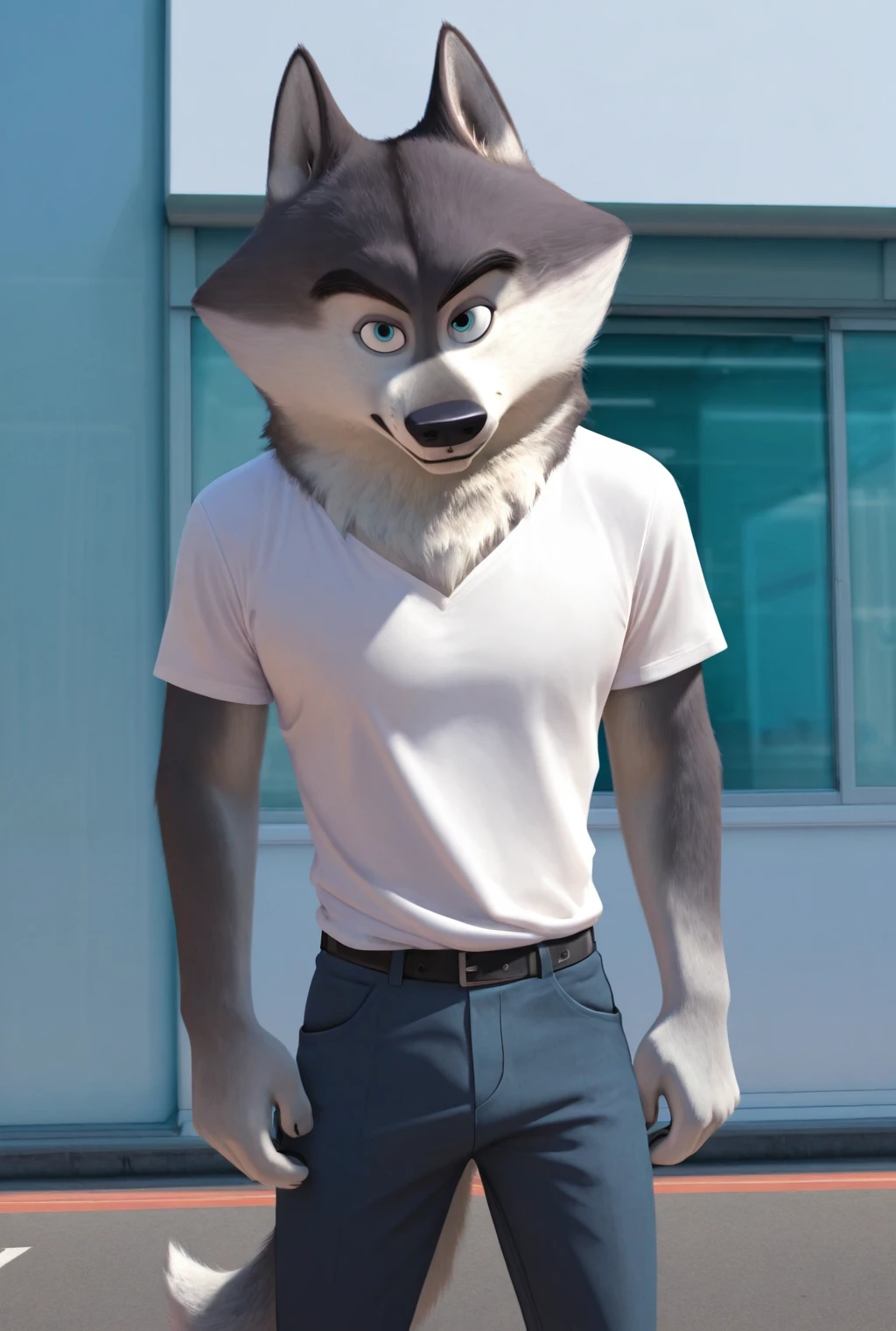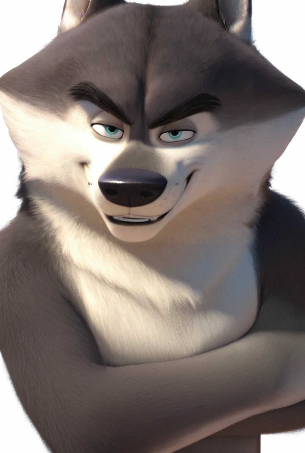 agentclassified, grey fur, wolf, blue eyes, muscular male, thick eyebrows