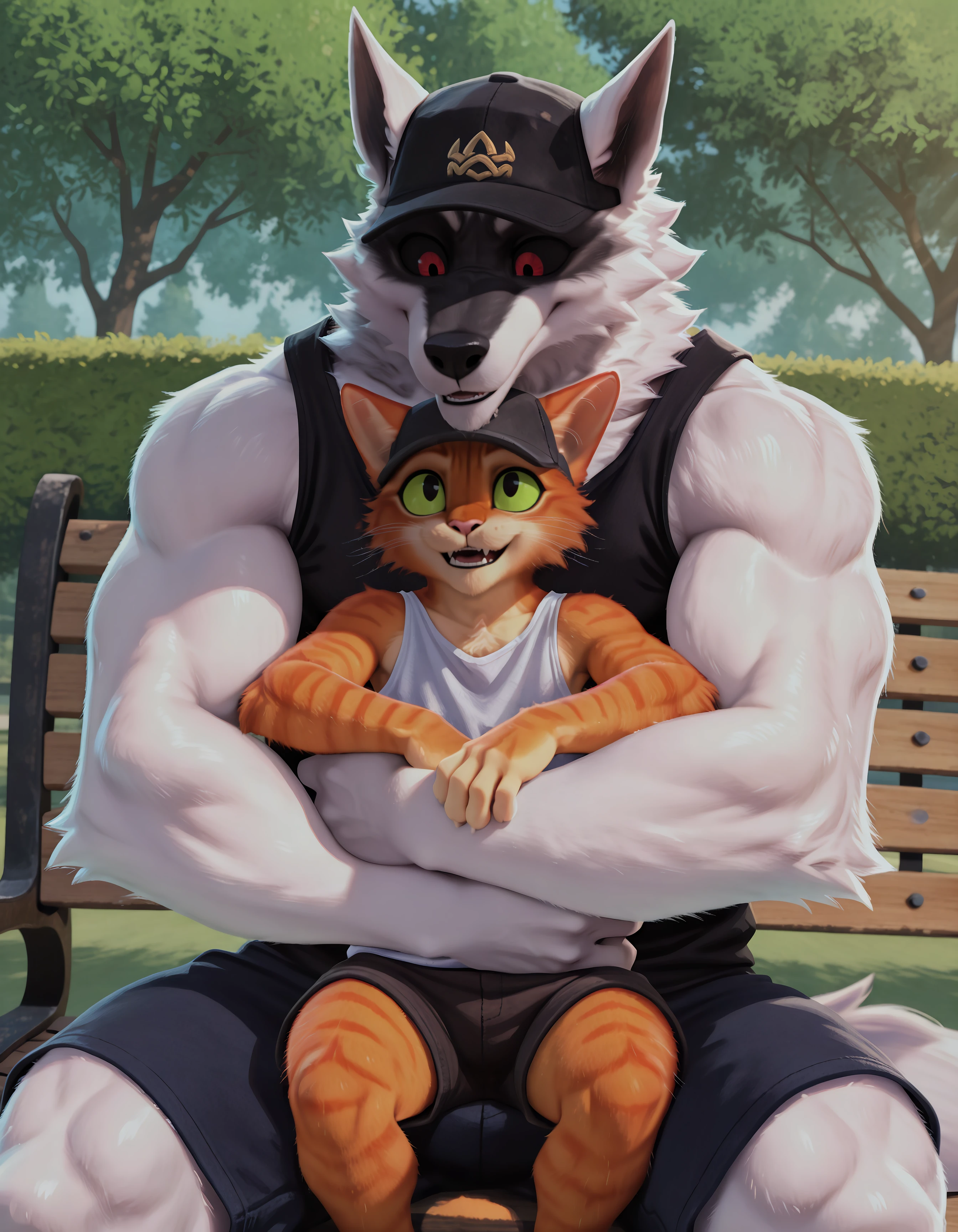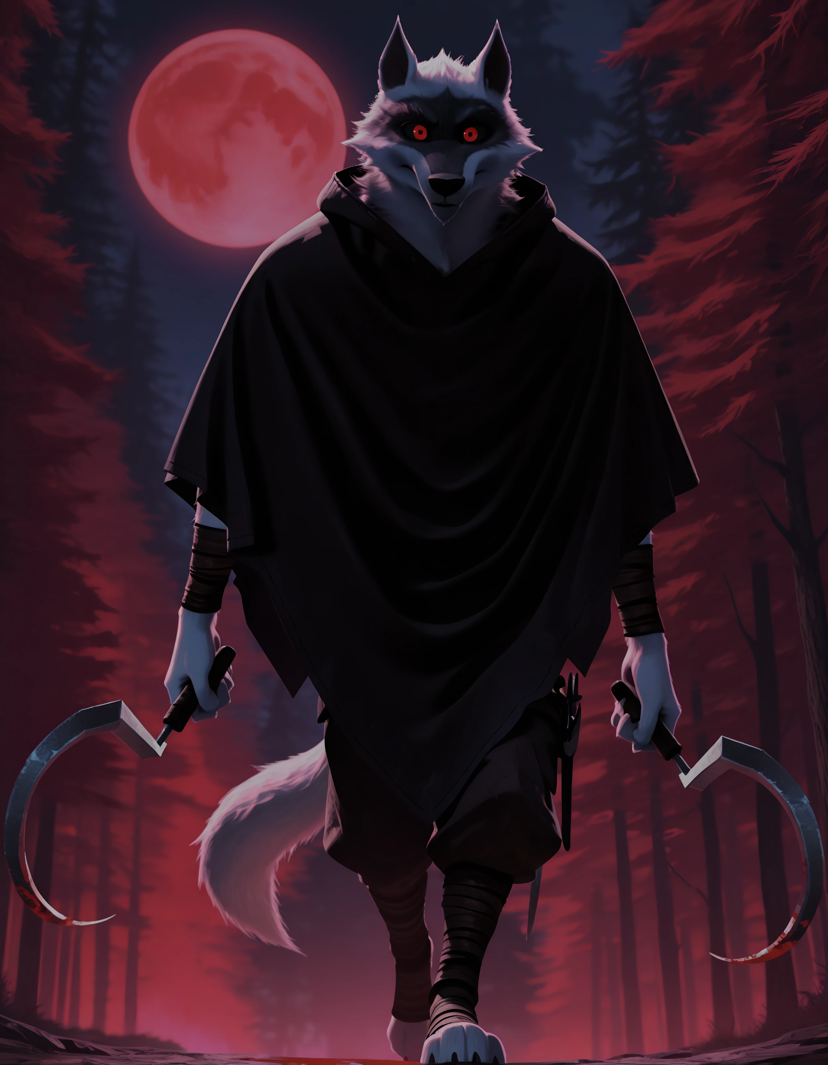 Death - d3ath, wolf, male, red eyes, white fur, poncho, pants, arm wraps, leg wraps