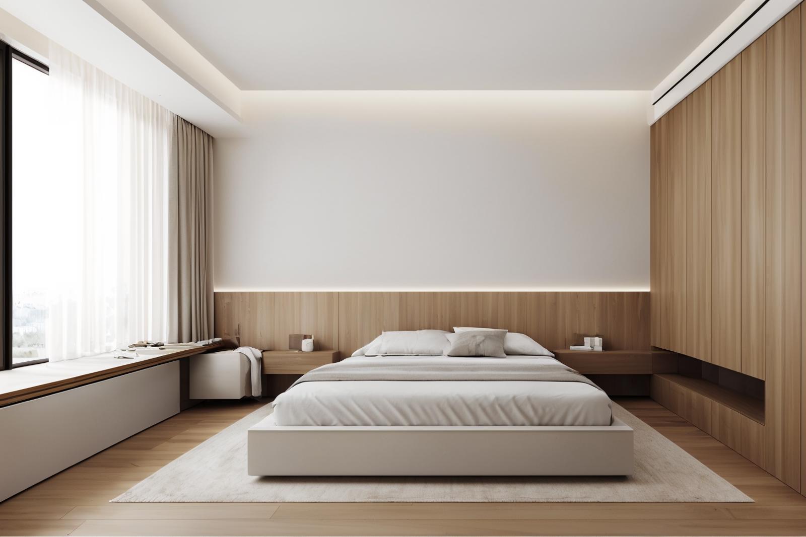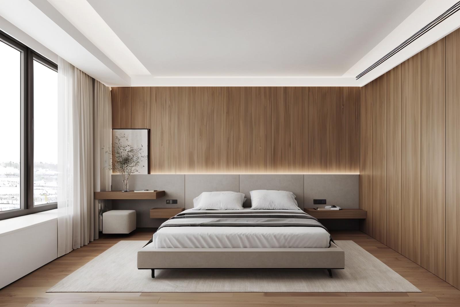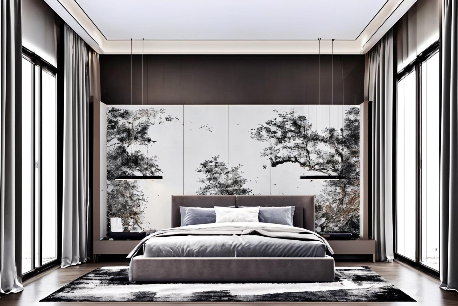 可出家装卧室空间,中式风格与原木风格特征明显,可加相应提示词,