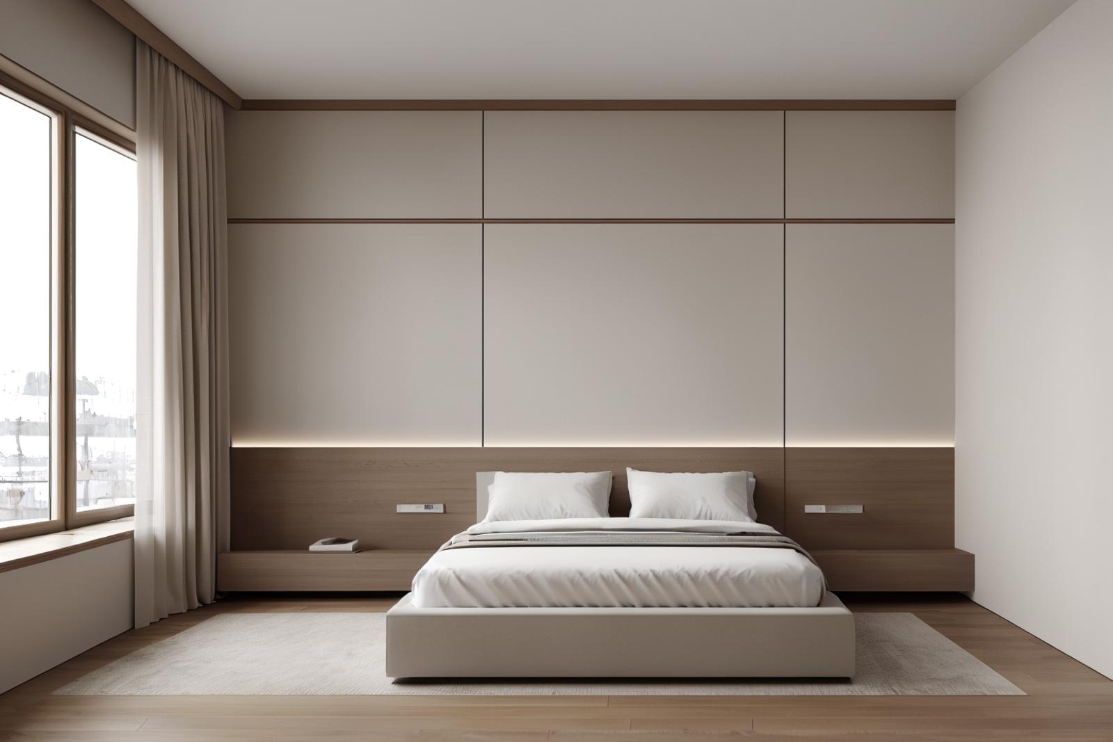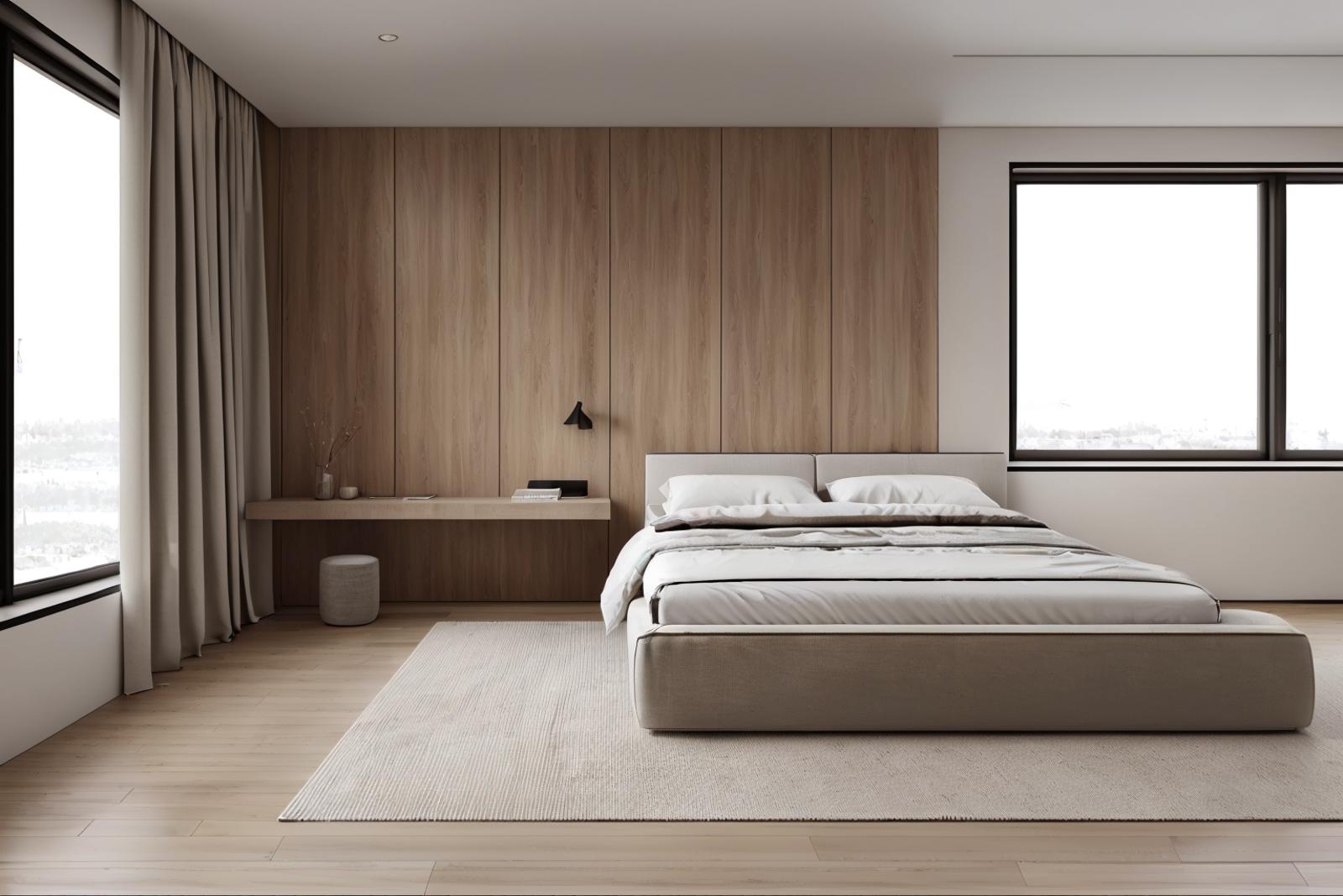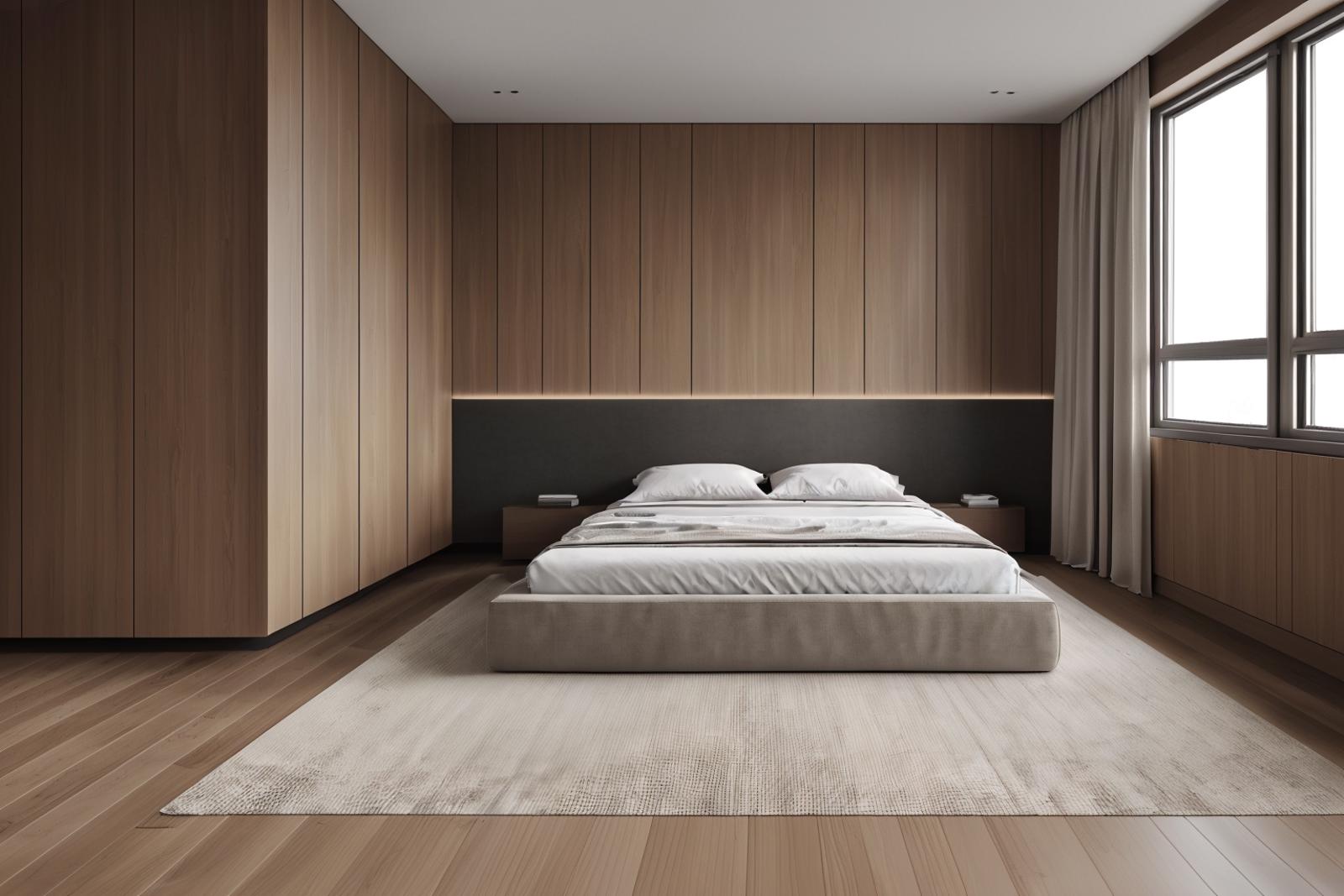 可出家装卧室空间,中式风格与原木风格特征明显,可加相应提示词,