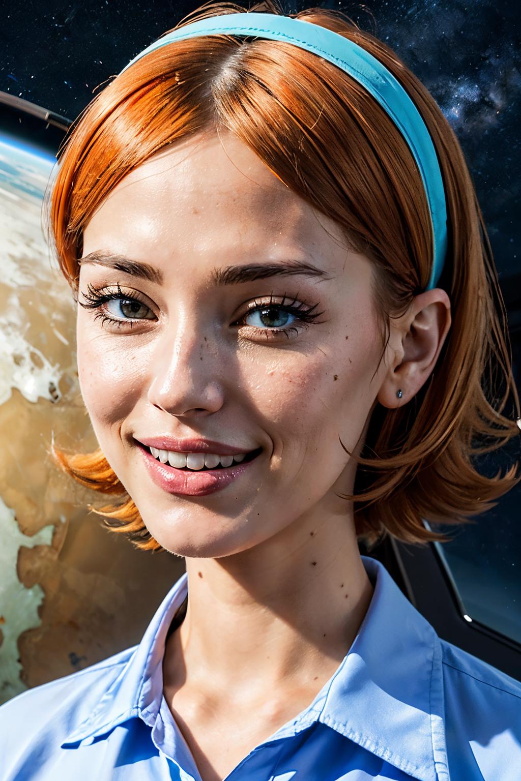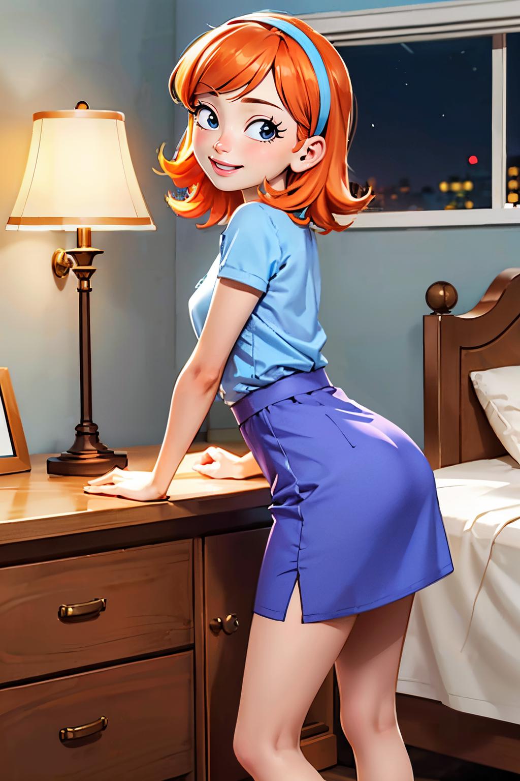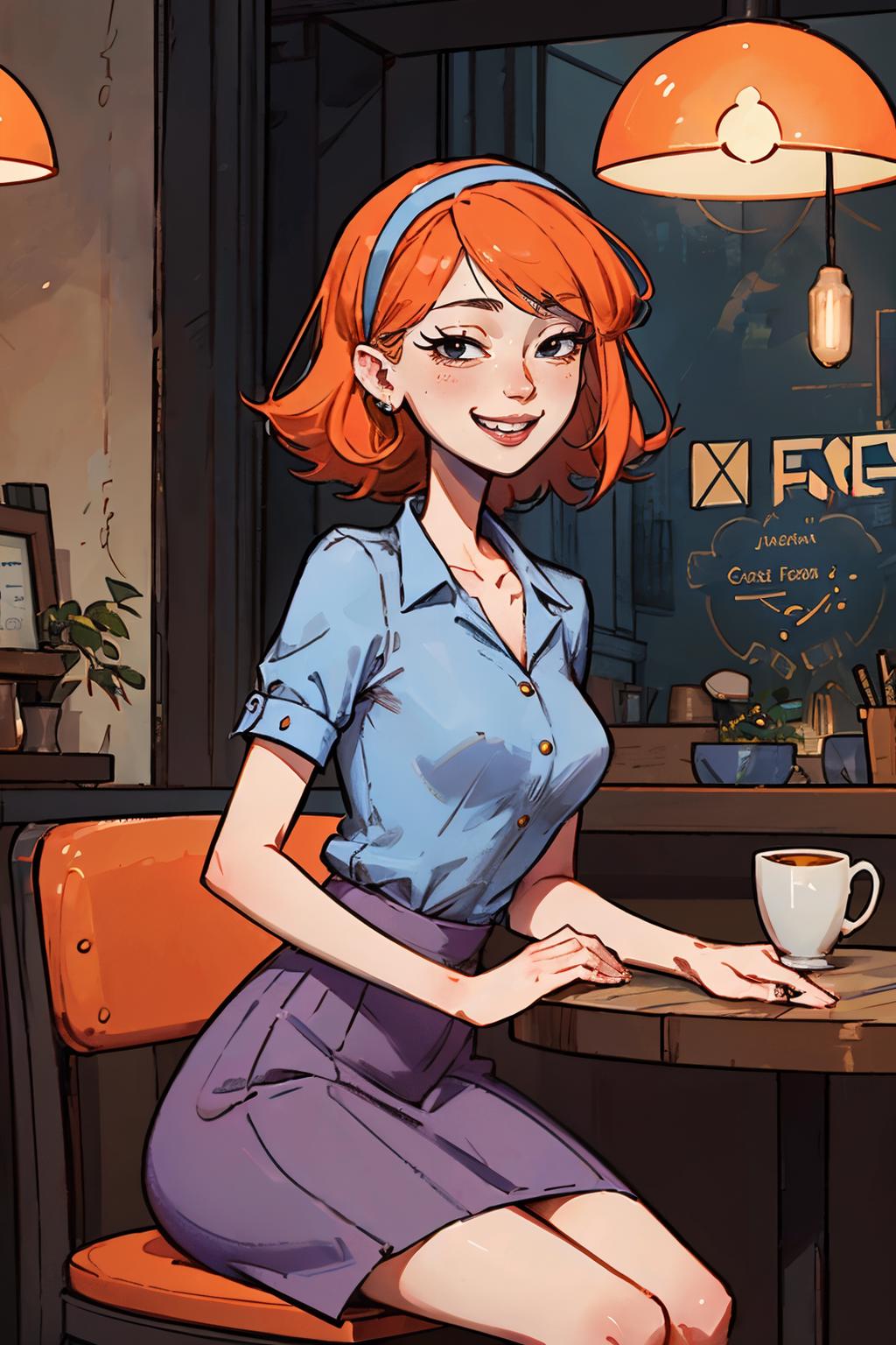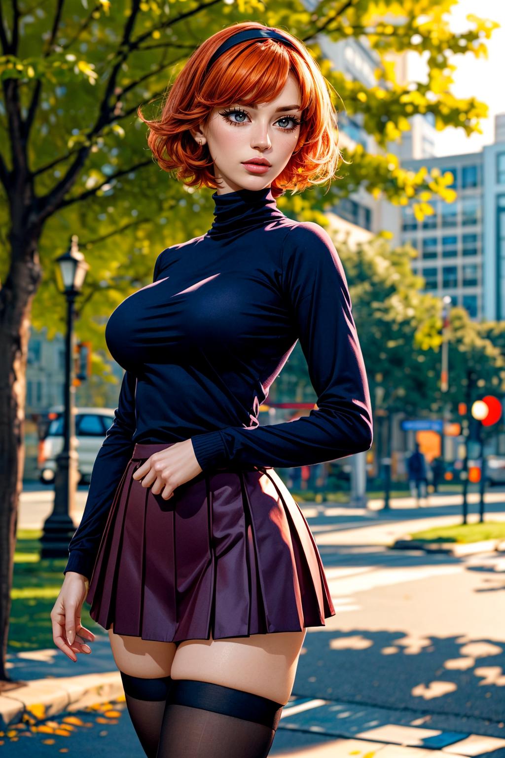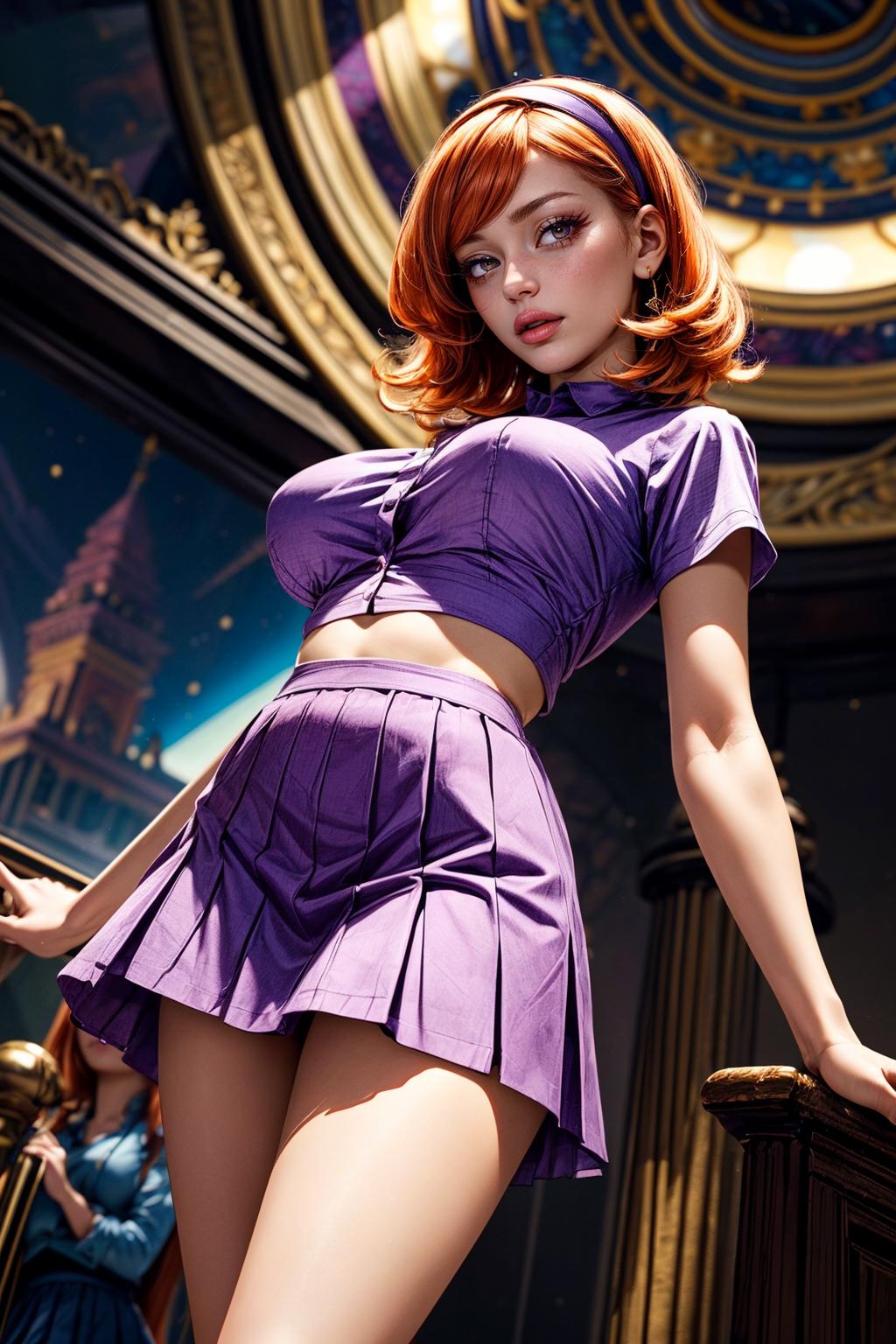 ✦ The main trigger words is 1girl, full body, hairband, long hair, orange hair, pleated skirt, purple skirt, shirt, skirt, socks, small black pupils, mini pupils,