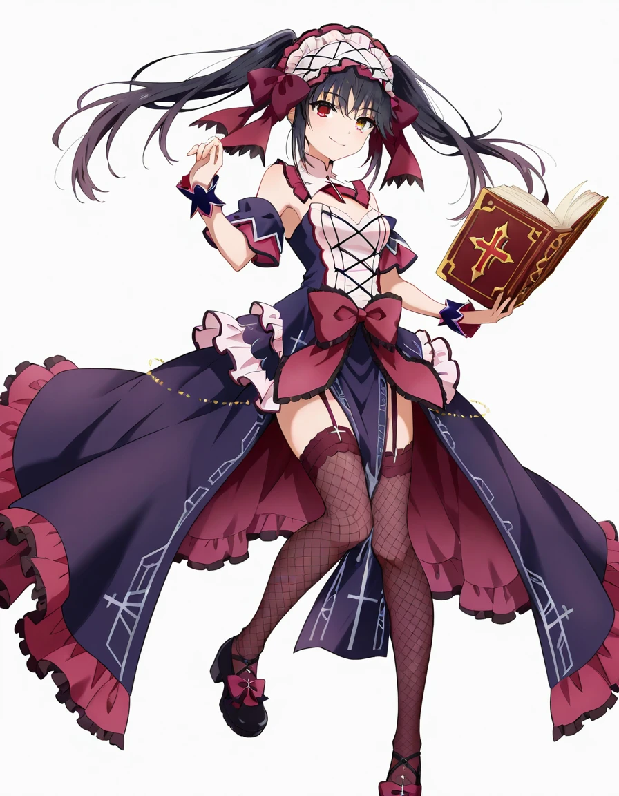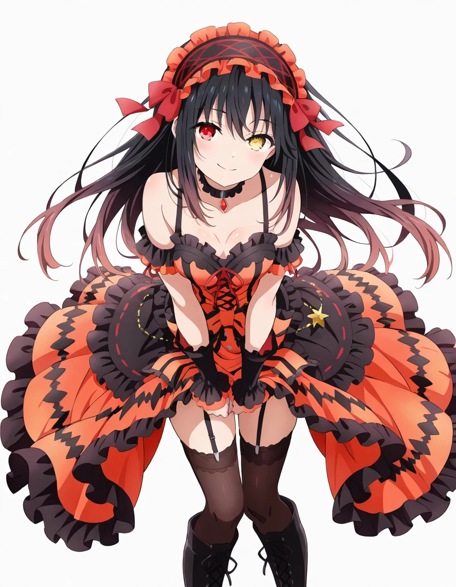 Kurumi, medium breast, red eyes, long hair, black hair, half updoNightmare Atral Dress: