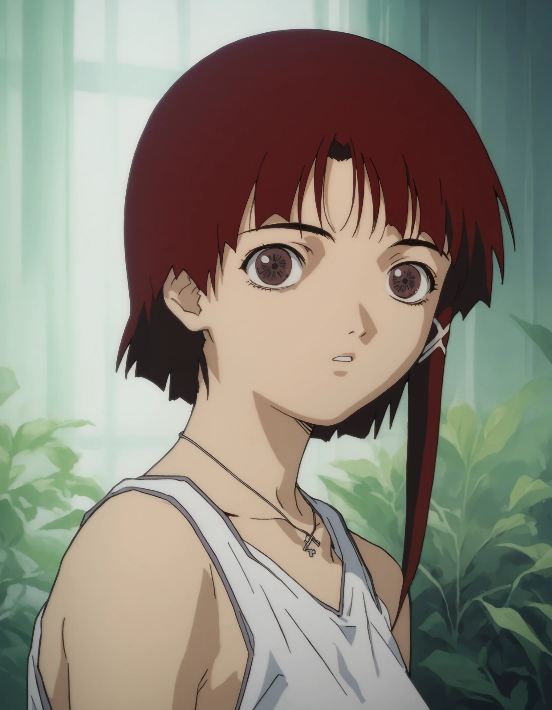 A model trained on the likeness of the character Lain Iwakura from the anime Serial Experiments Lain, because the model was trained only on official media it also produces a great style transfer on lower weights.