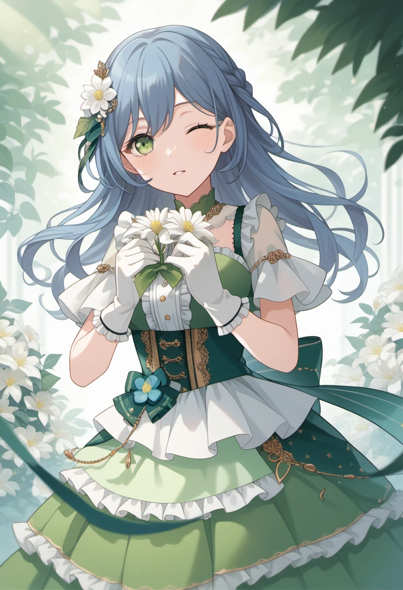 Trigger Words: asahi rokka, blue hair, green eyes, long hair