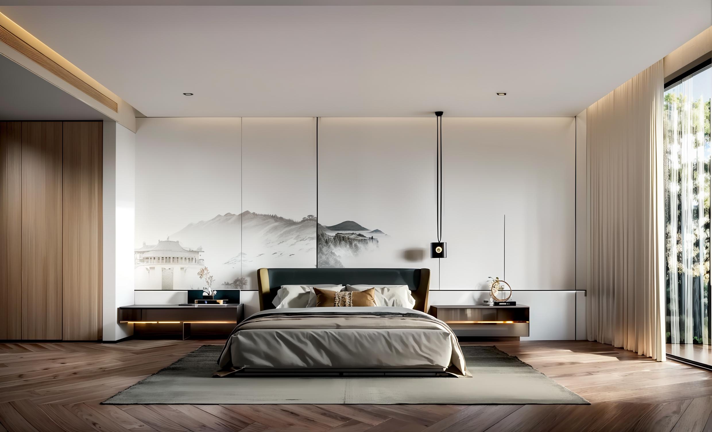 这是一个新中式风格的Lora,可以用新中式风格的卧室和客厅的生成。