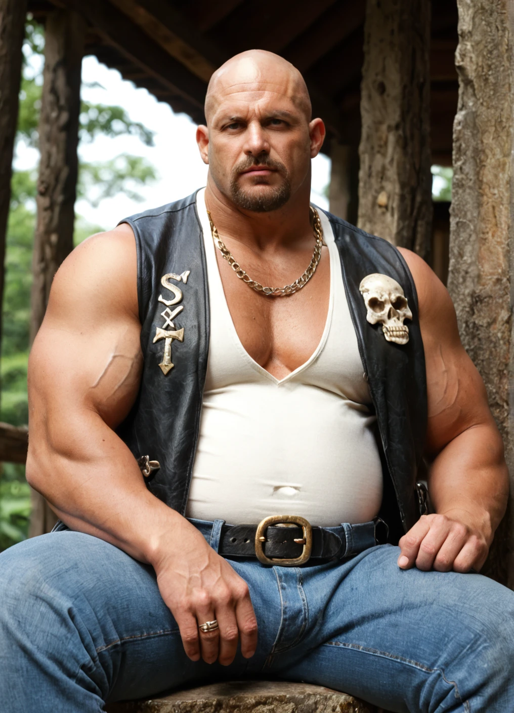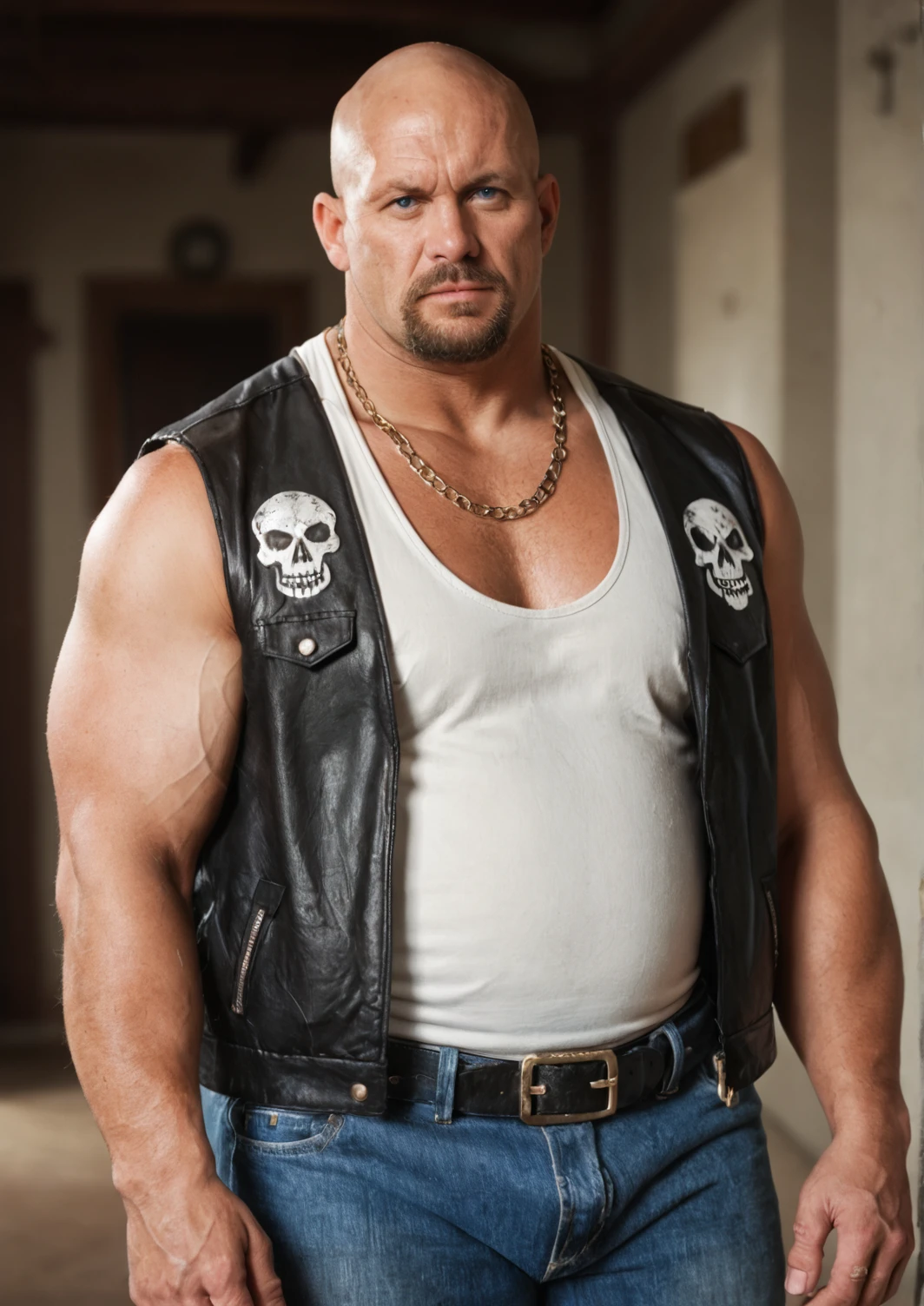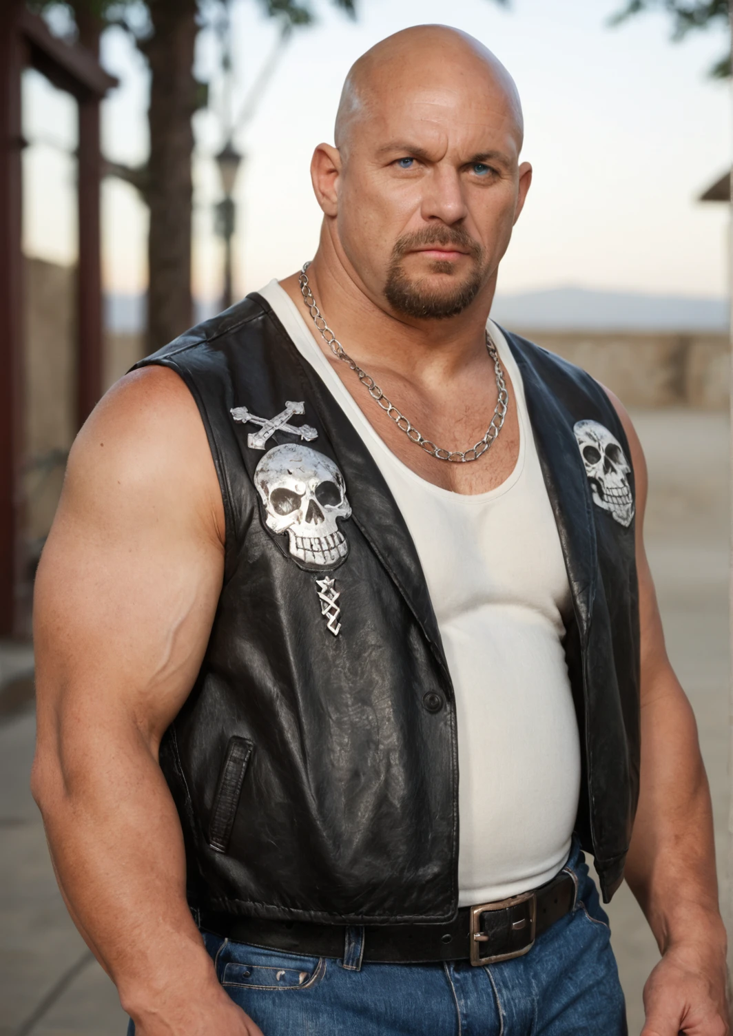 :stone-cold,bald,brown facial hair,blue eyes,old,frown,