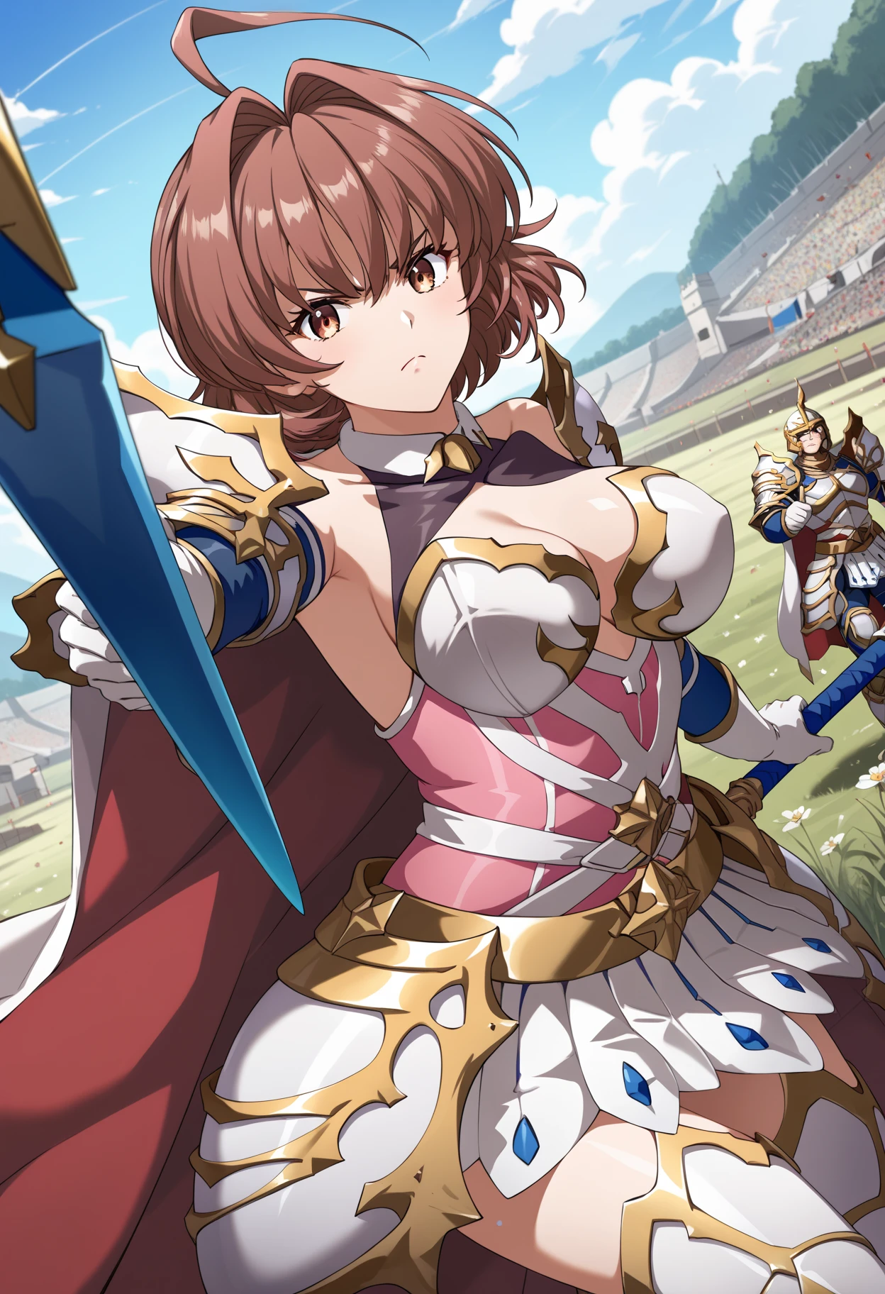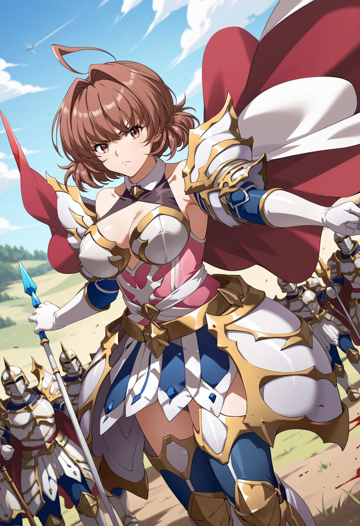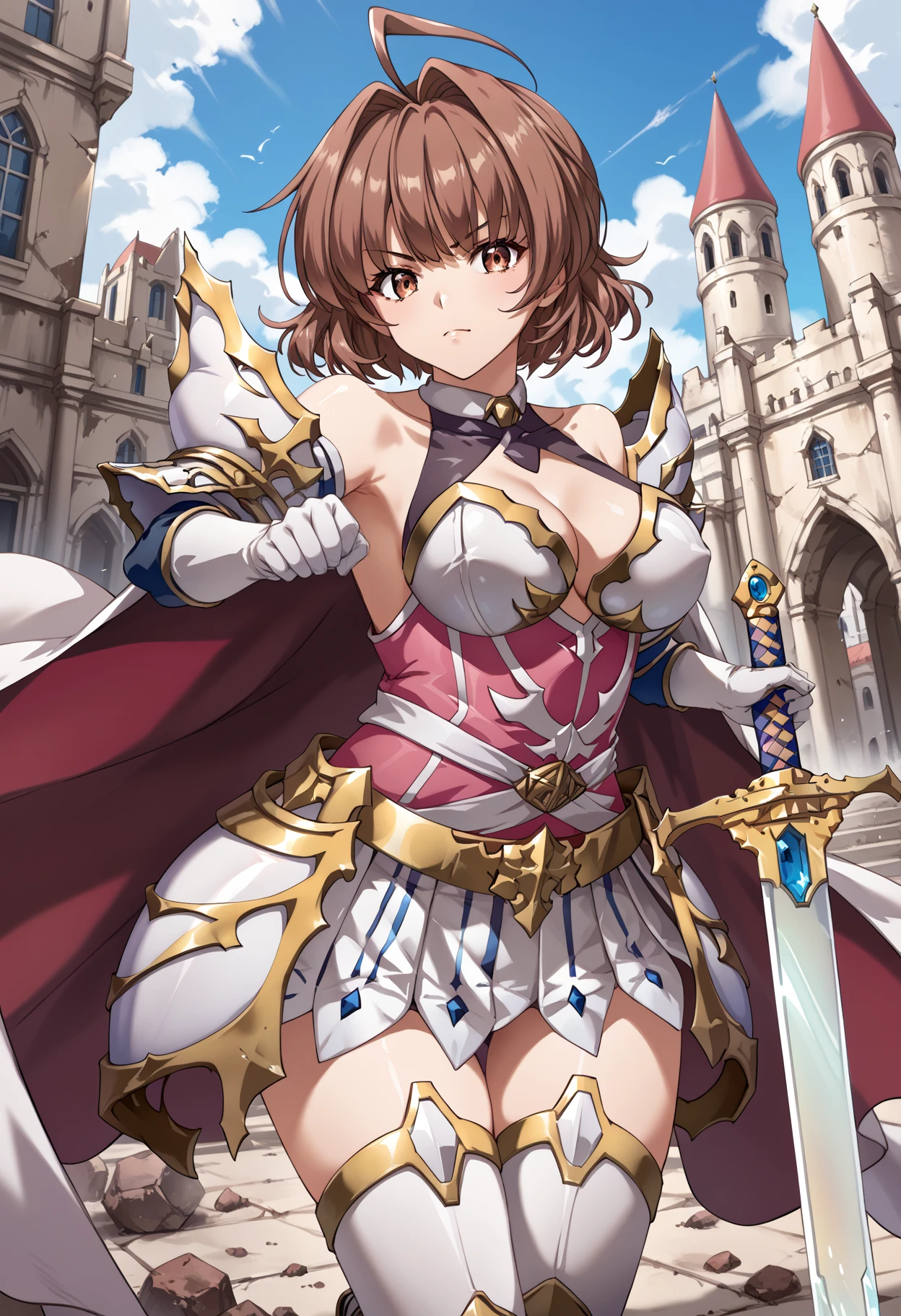 b_clothes,white gloves,armor,cape,zettai ryouki,armored boots,