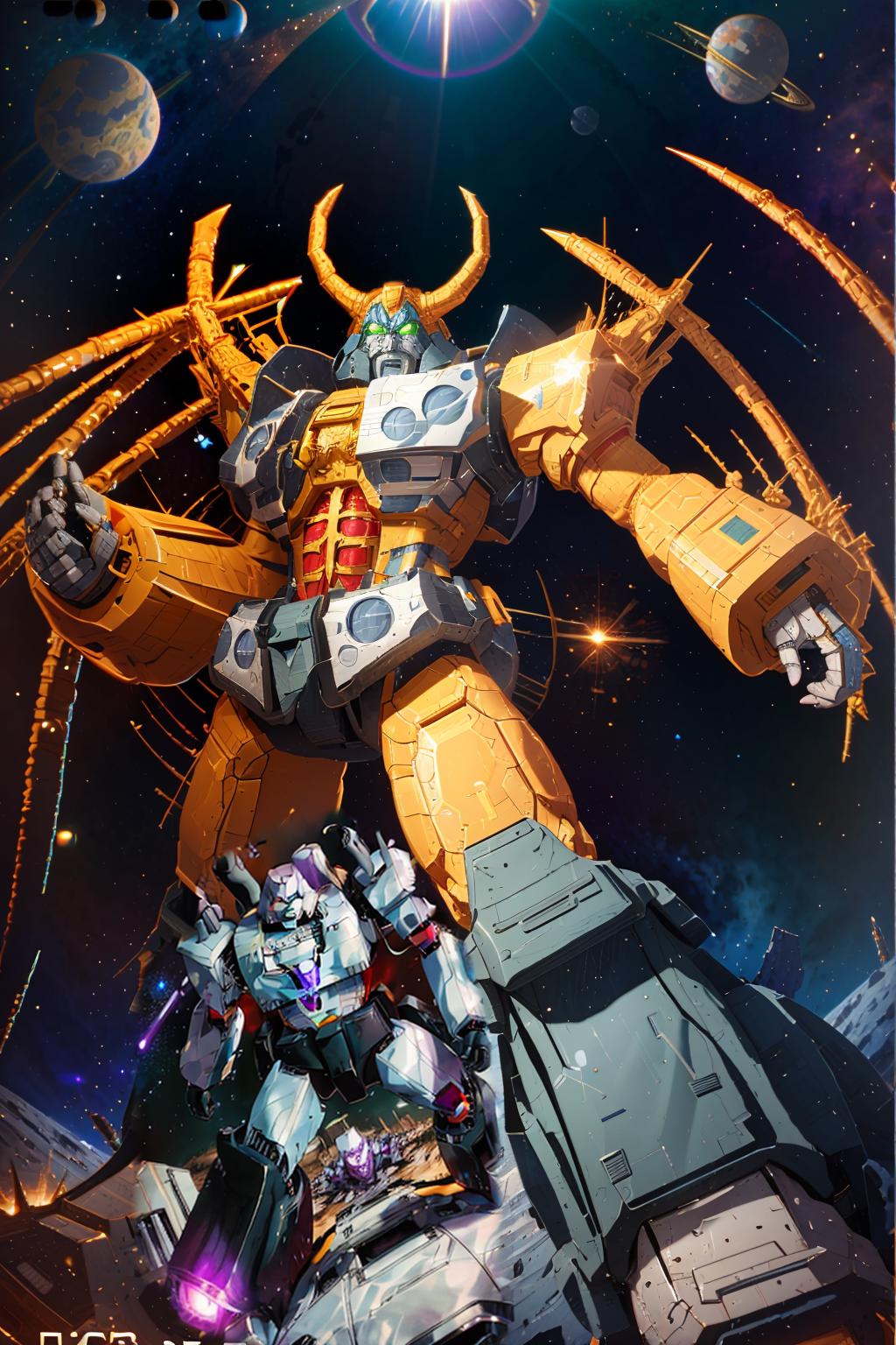 Unicron in robot mode only, it has a really hard time making the rings/wings that go on the shoulders, sometimes they spawn all over the place. Depending on your model, as with all my focused loras, may want to lower the weight to see what works best for you and the look you want.