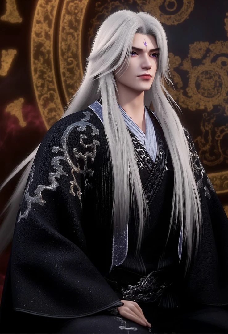 wanglin, 1boy, solo, white hair,