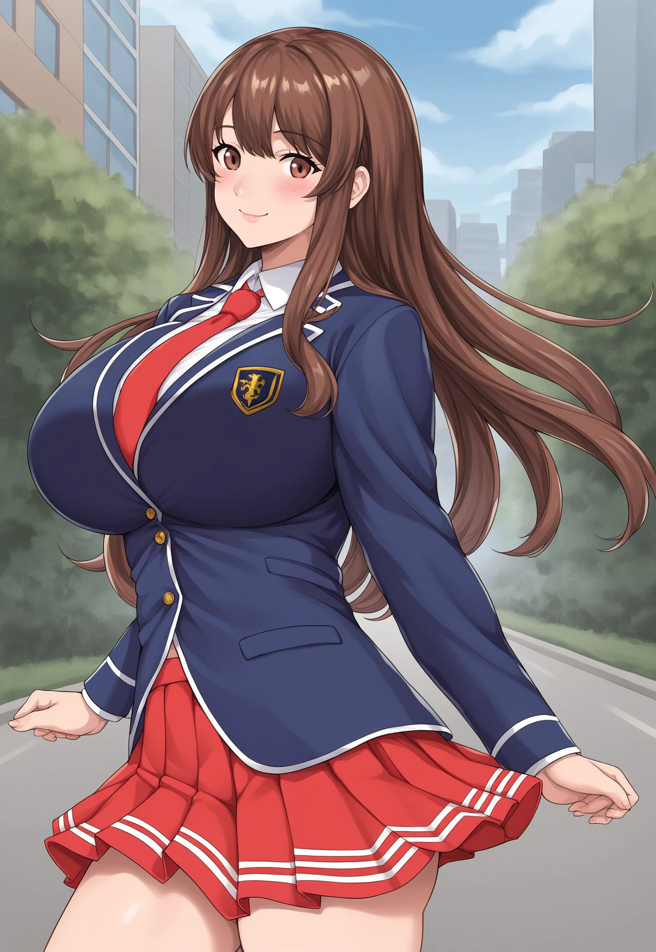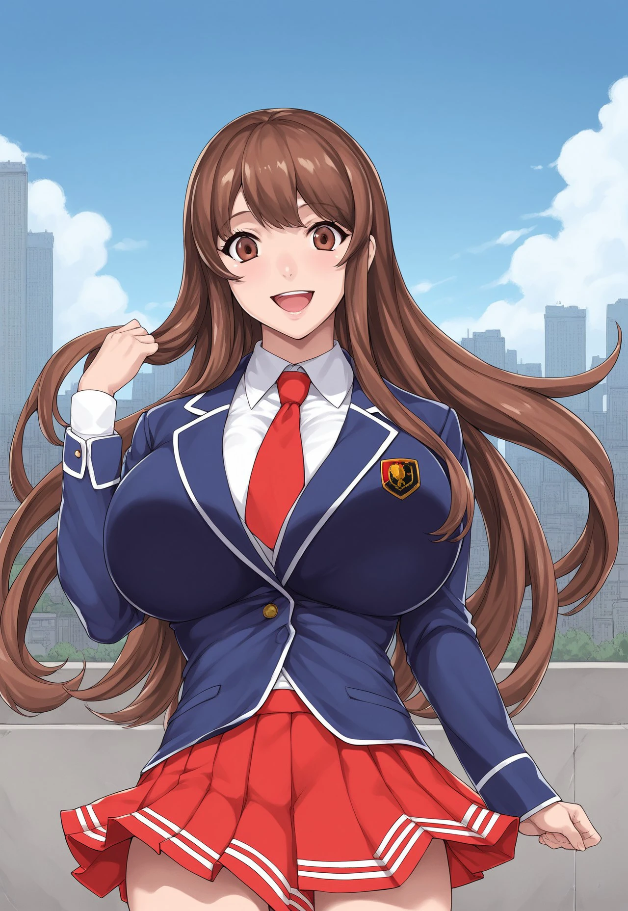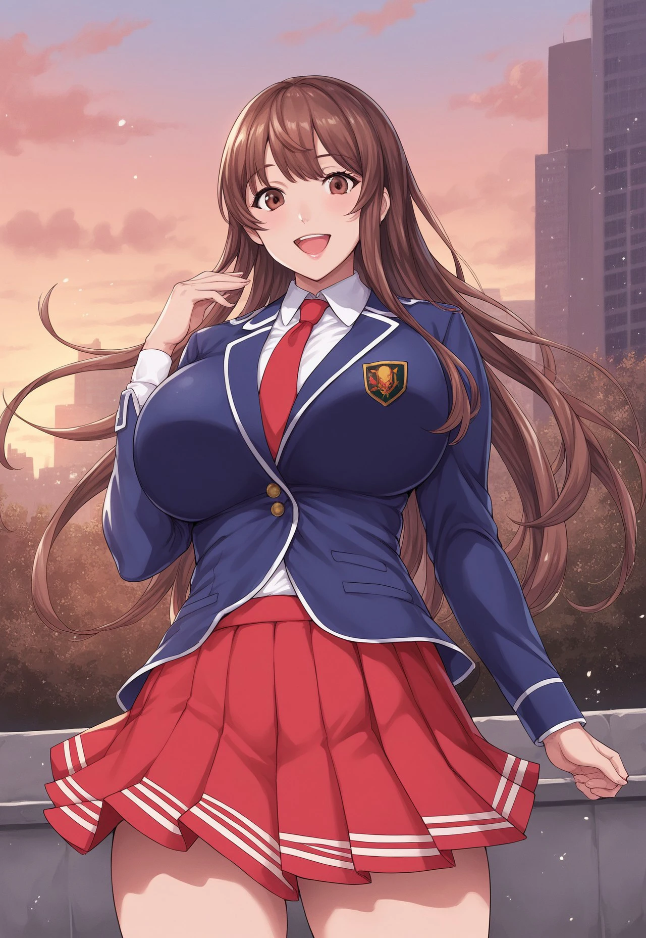 Tags: Akari Kinoshita, long hair, brown hair, brown eyes, huge breasts,