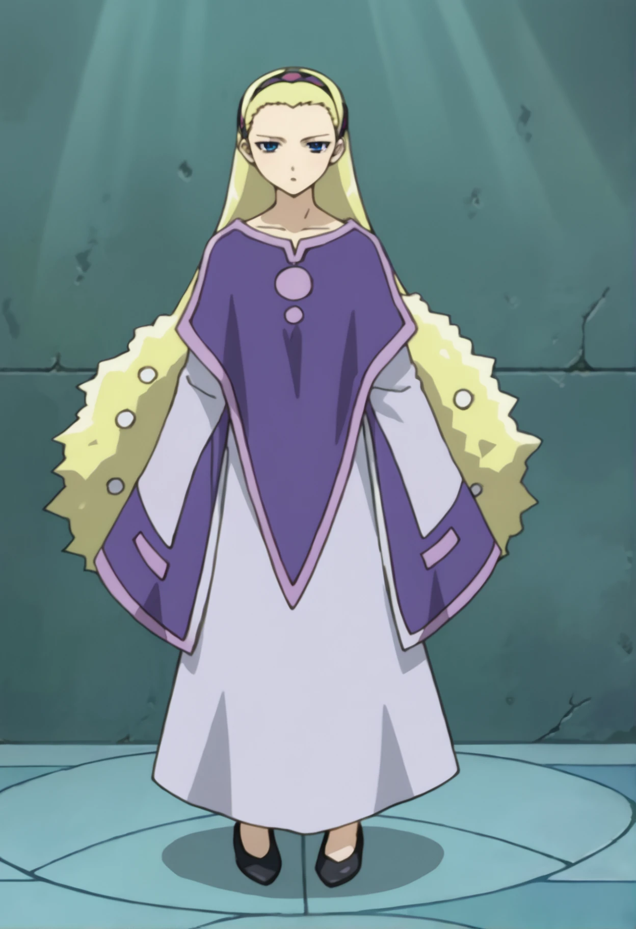 Character from the anime Vandread. She only appears in one episode so not many shots of her for training data. didn't seem to have a name so I called her Munya Priestess as she worships this "god" called Munya.