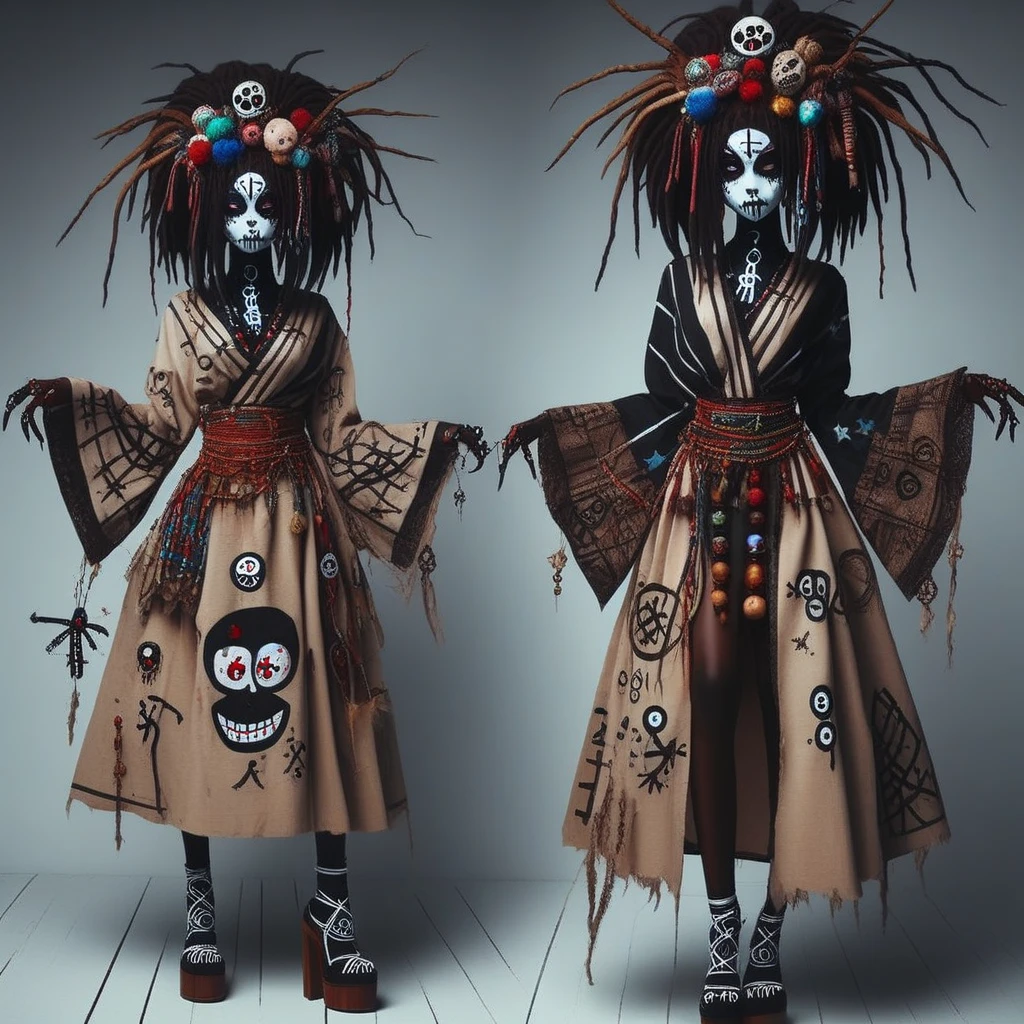 This model is trained on the concept of voodoo fashion and symbols. It's focus is mostly New Orleans voodoo with elements of Haitian voodoo, African Voodoo, and some witchcraft or wiccan elements. This model runs best at .3-.9 strength. I personally use euler as the sampler, but others work, too. It can create some fun, unique images when combined with other LoRas.