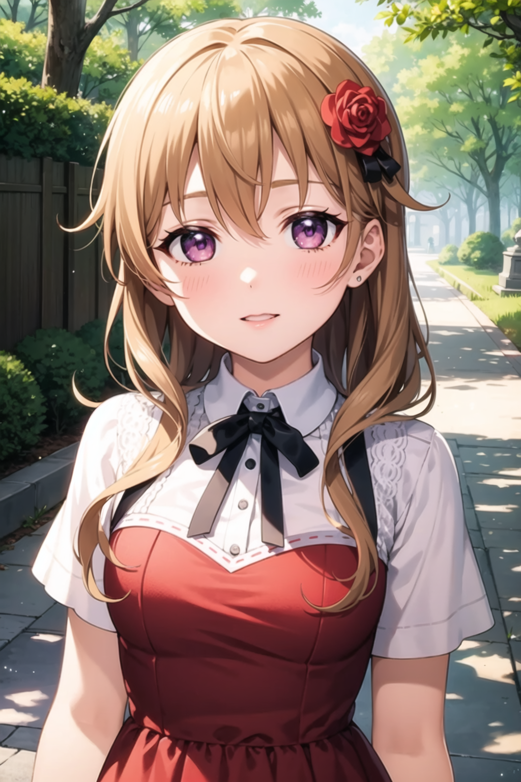 Tags you'll need: 1girl, solo, konoe kanata, orange hair, purple eyes,