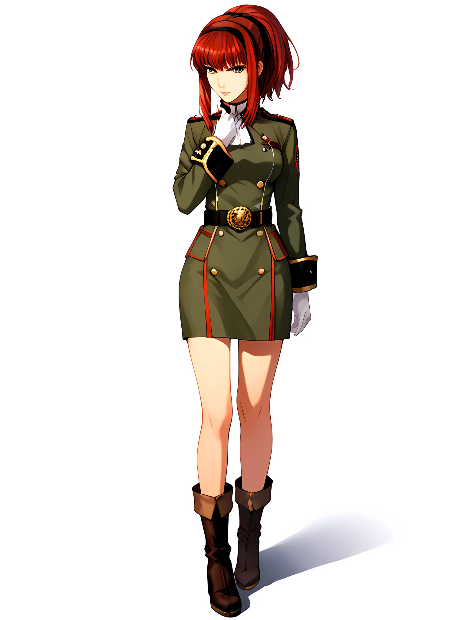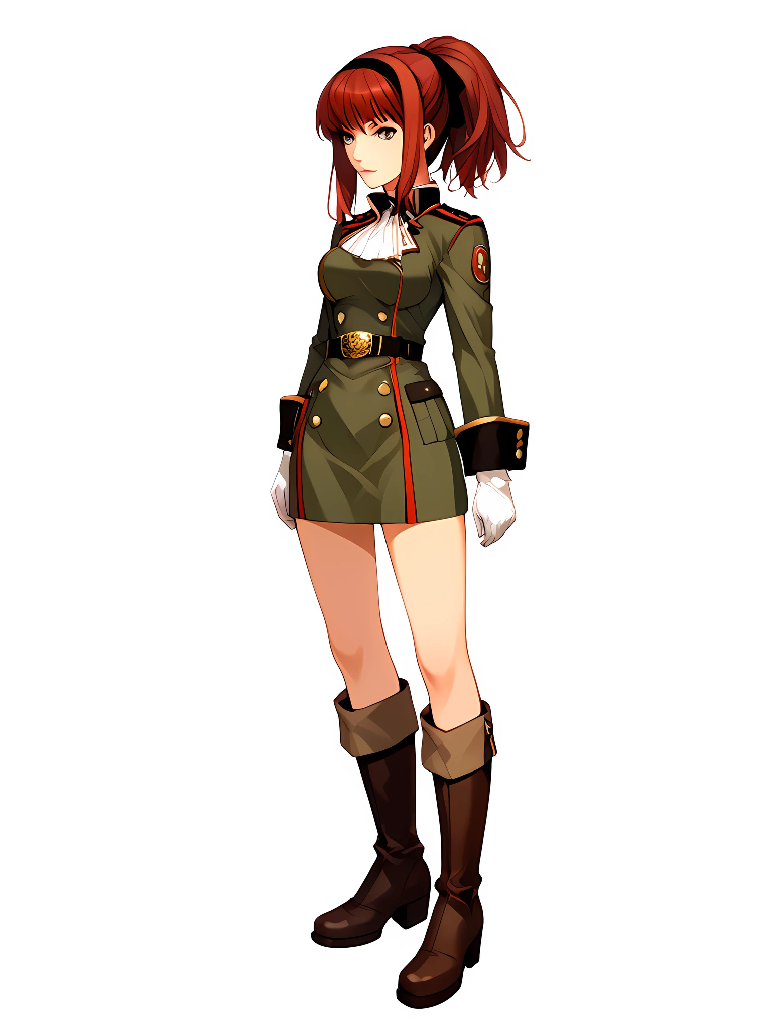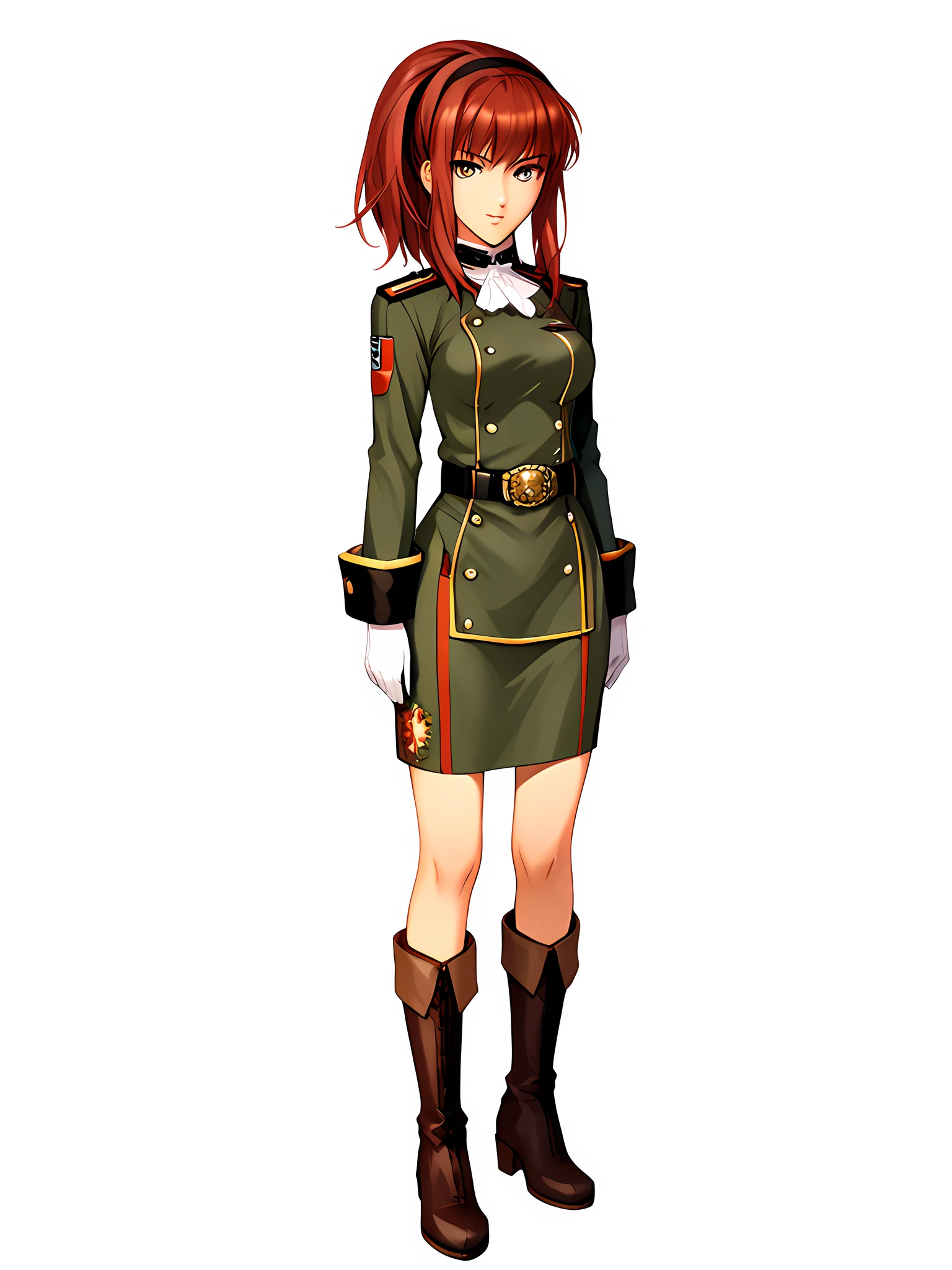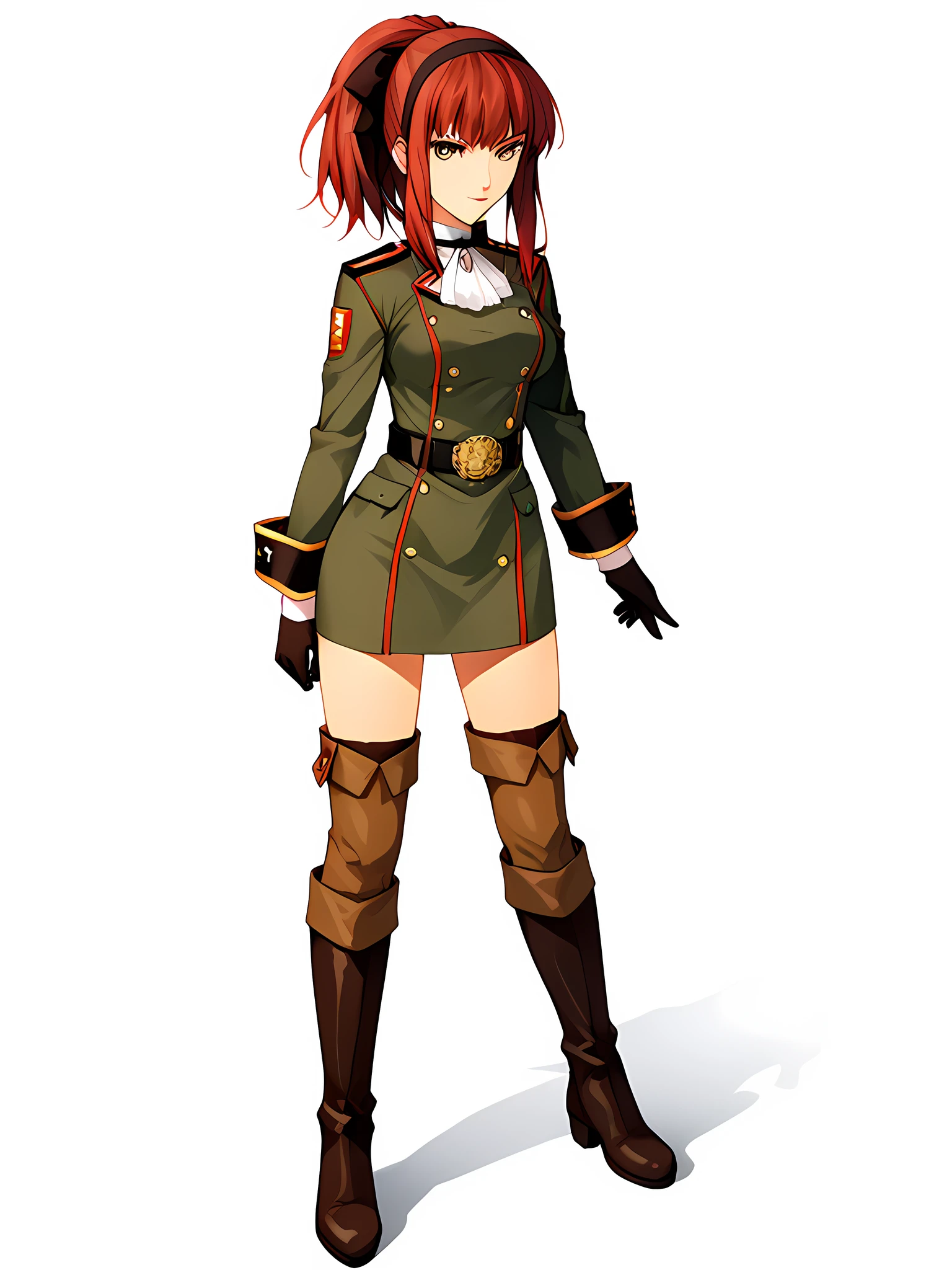 boots, uniform, gloves, military uniform, military, belt, knee boots, hairband, ponytail, militaryuniform