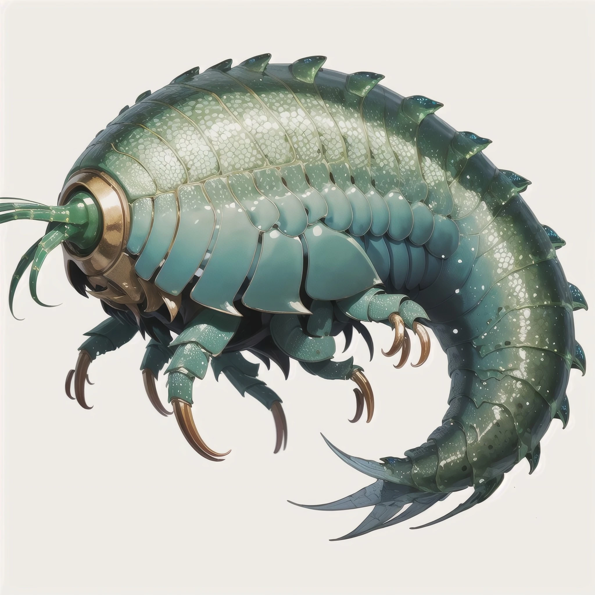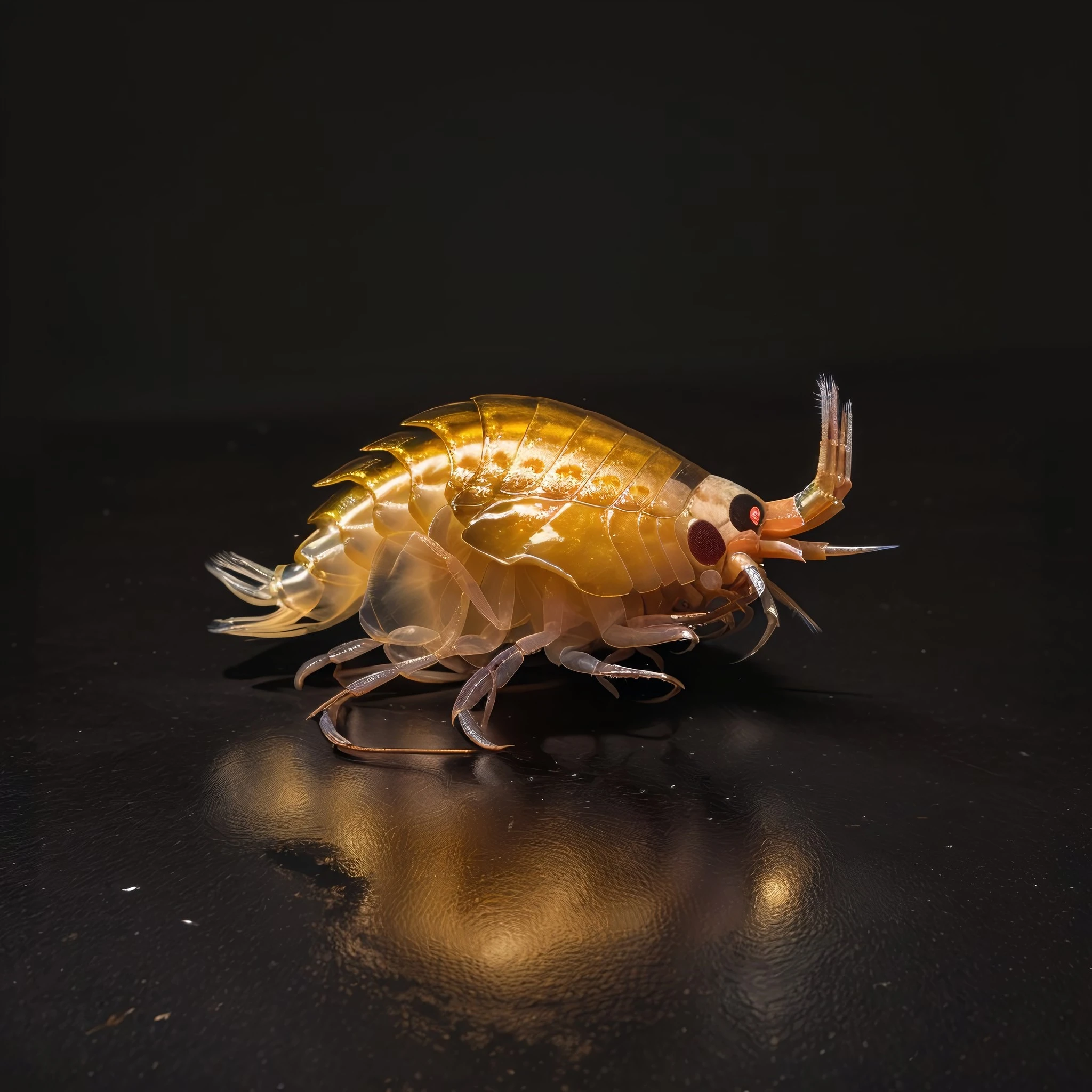 This LoRA is trained to create images of amphipods, which are a type of crustacean that range in size from less than a millimeter to nearly a foot long. The most familiar amphipods are probably the sandhoppers that live in the sand of beaches around the world.