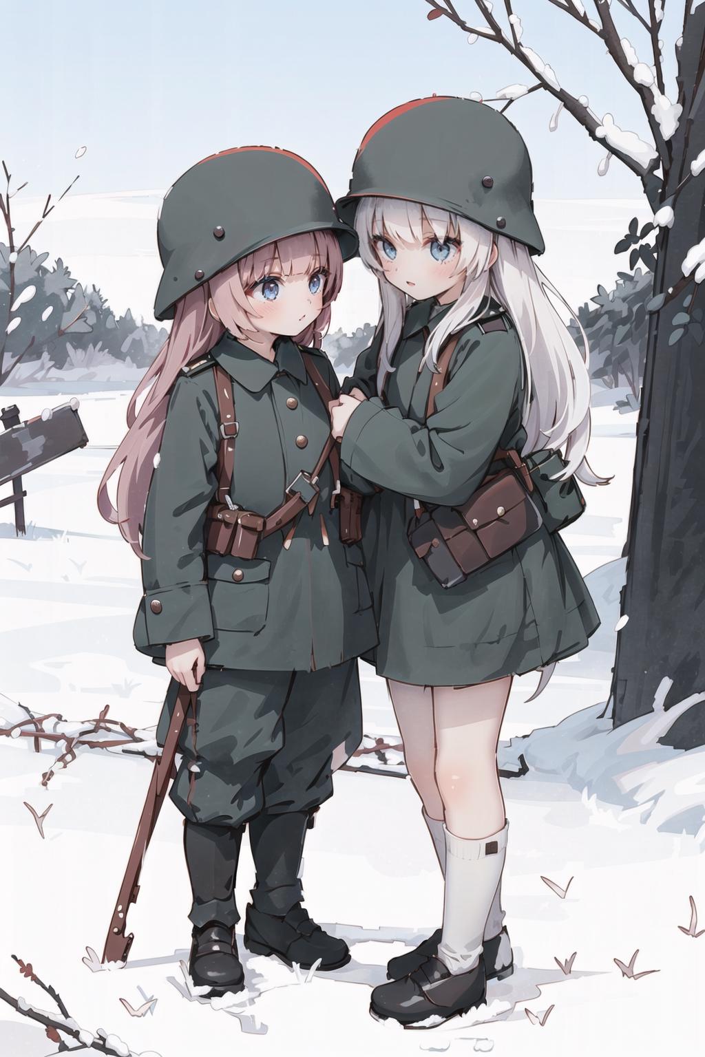 This LoRA amalgamates multiple types of German uniforms during WWI, so it's not strictly accurate. For the helmet, I decided to only use the Stahlhelmet for now, but it's possible I will add some way to use the Pickelhaube later.