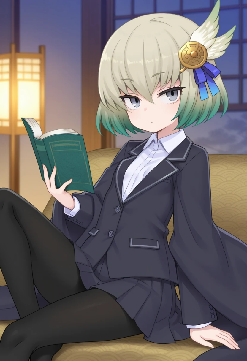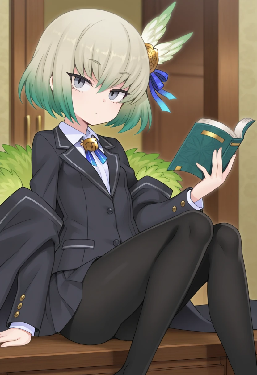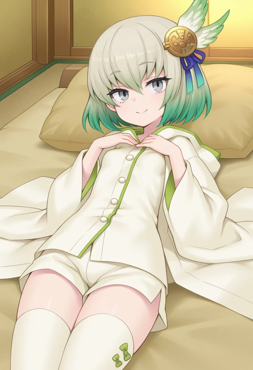 kuchiba_muramasa, green hair, multicolored hair, gradient hair, short hair, grey eyes, small breasts