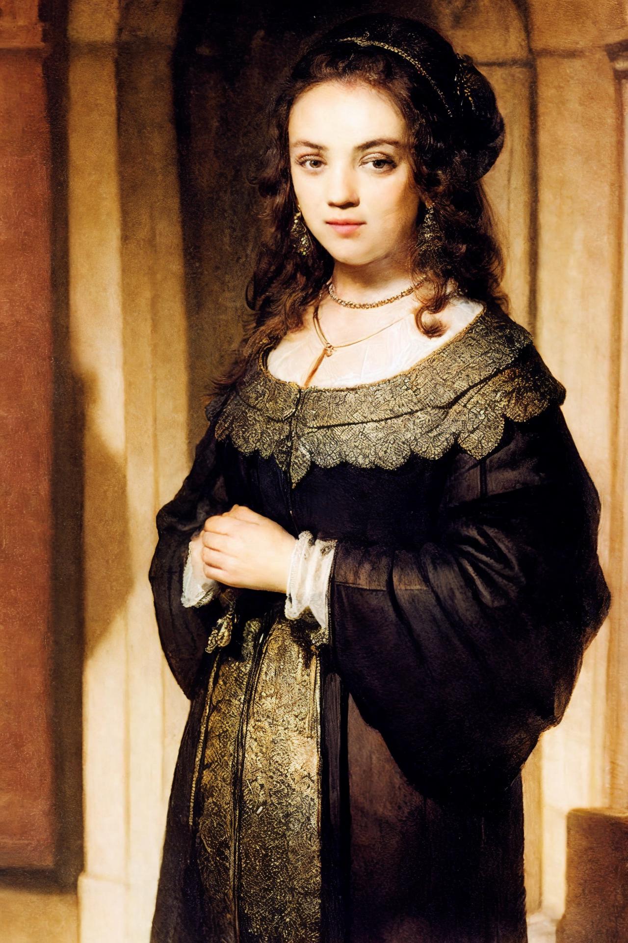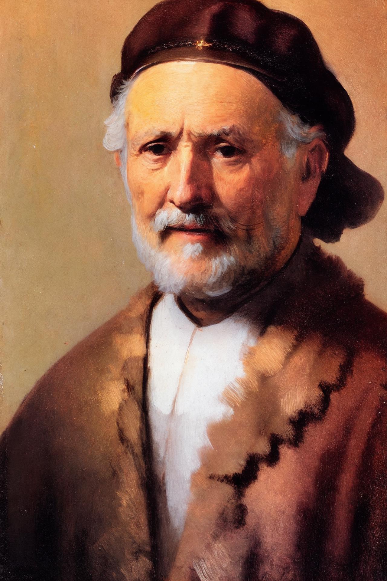 Stylization by Rembrandt Harmenszoon van Rijn, Dutch painter, engraver, great master of chiaroscuro, the largest representative of the golden age of Dutch painting.