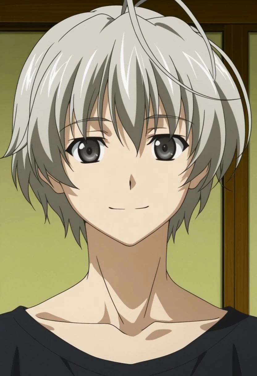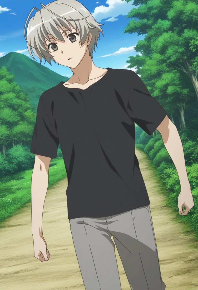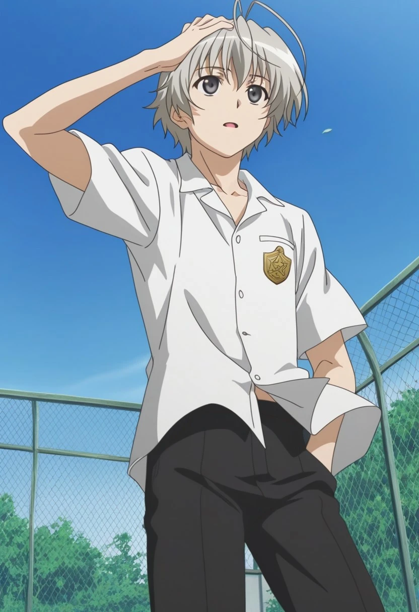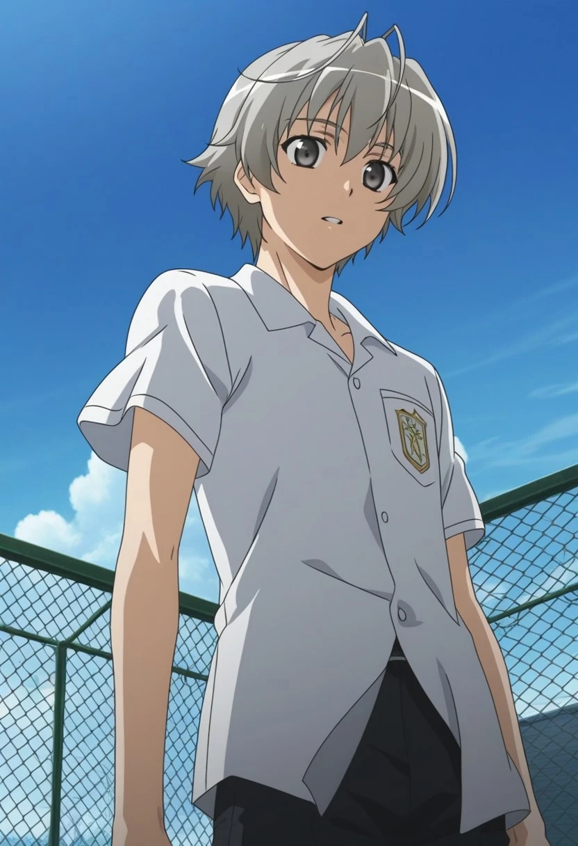 Haruka Kasugano, gray-silver hair, gray-silver eyes