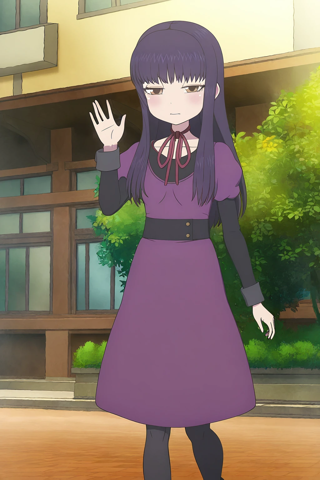 neck ribbon, red ribbon, purple dress, long sleeves, pantyhose,shoesFor complex image generation, please use inpainting or tools like adetailer for face restoration, otherwise the results may be suboptimal.