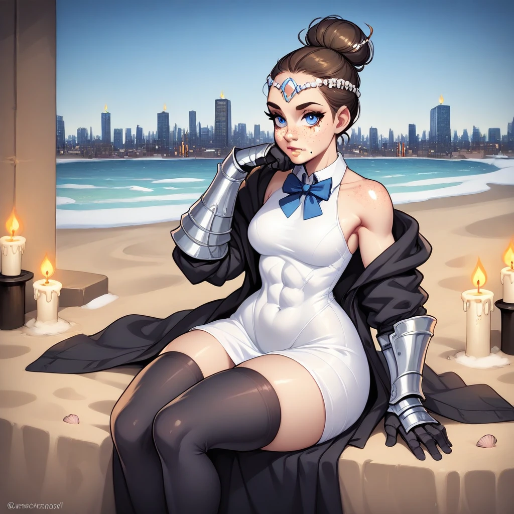 Exaggerated Features: The eyes are large and expressive, a common trait in many stylized character designs. The lips are full and well-defined.