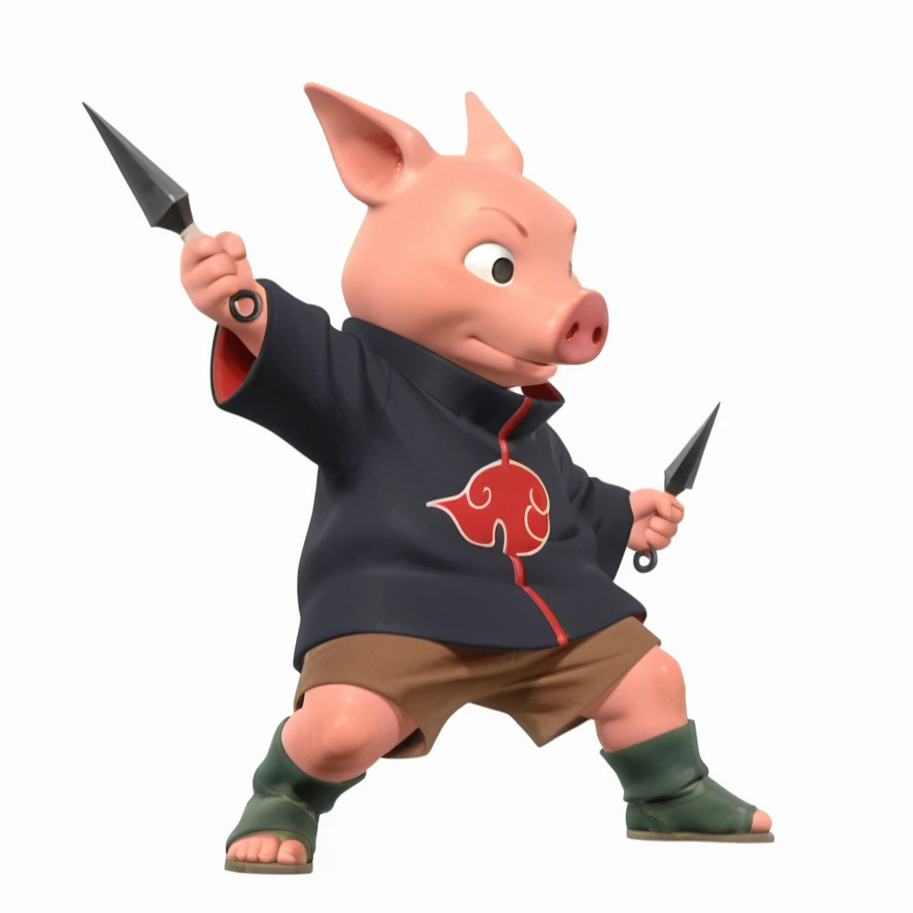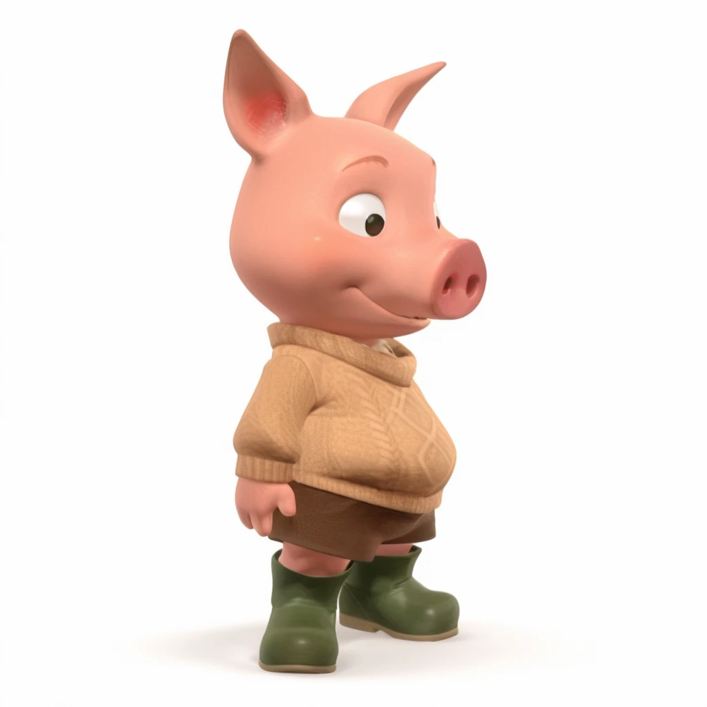 p1ggl3yw1nks_il, pig, male, pink skin, furry, sweater, black eyes, brown shorts, black eyes