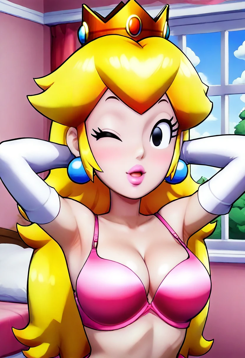 Full Outfit: princess peach, black eyes,pink dress, white gloves