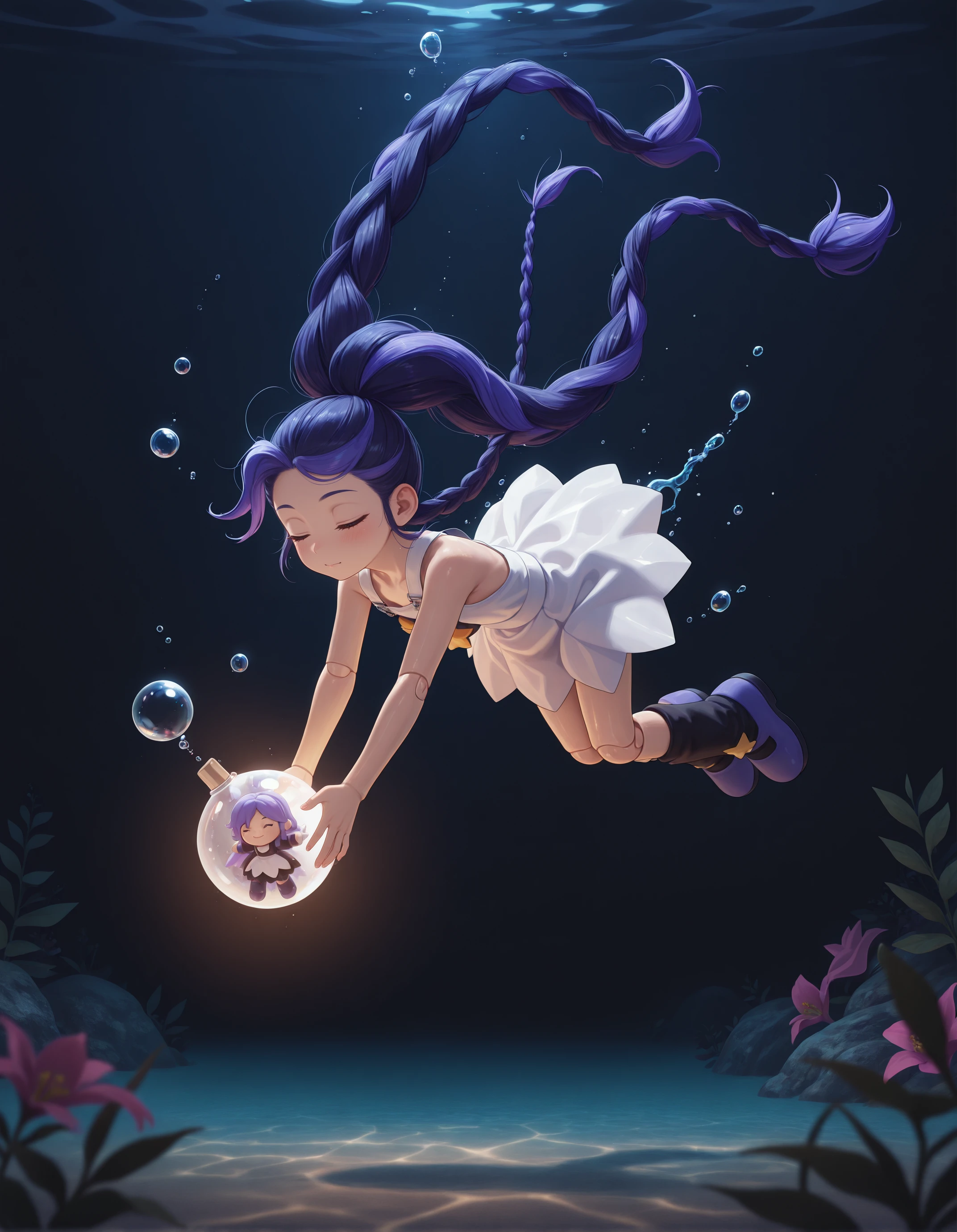Rich Details: Captures the glossy illustration style, vivid eyes, and playful doll-like vibe.