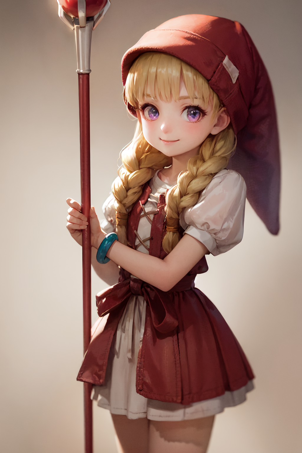 Add blonde hair and twinbraids if necessary. Her holding a staff doesn't look too bad on some models.
