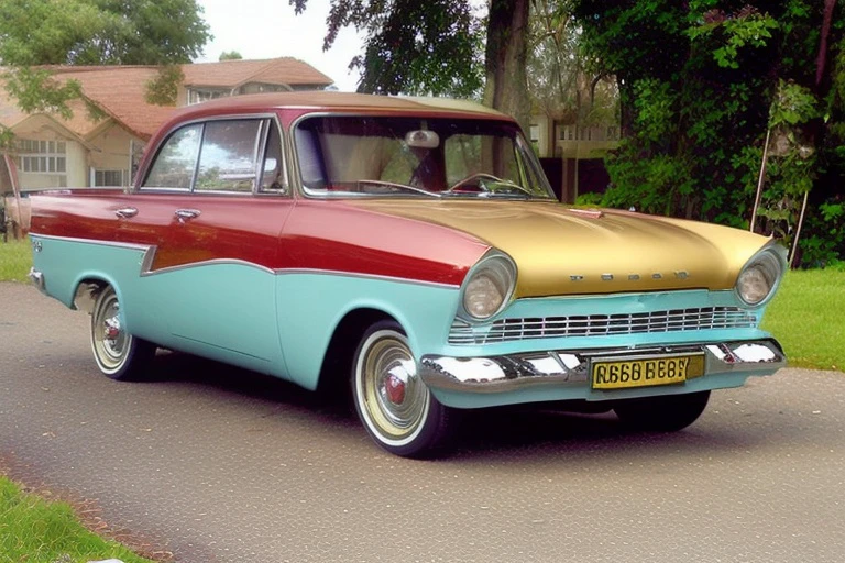 An experimental LoRa trained on 55 pics of a Ford 17m P2 , manufactured from 1957 - 1960 in Germany . Works with realistic Checkpoint models. Use a weight between 0.7 and 1.